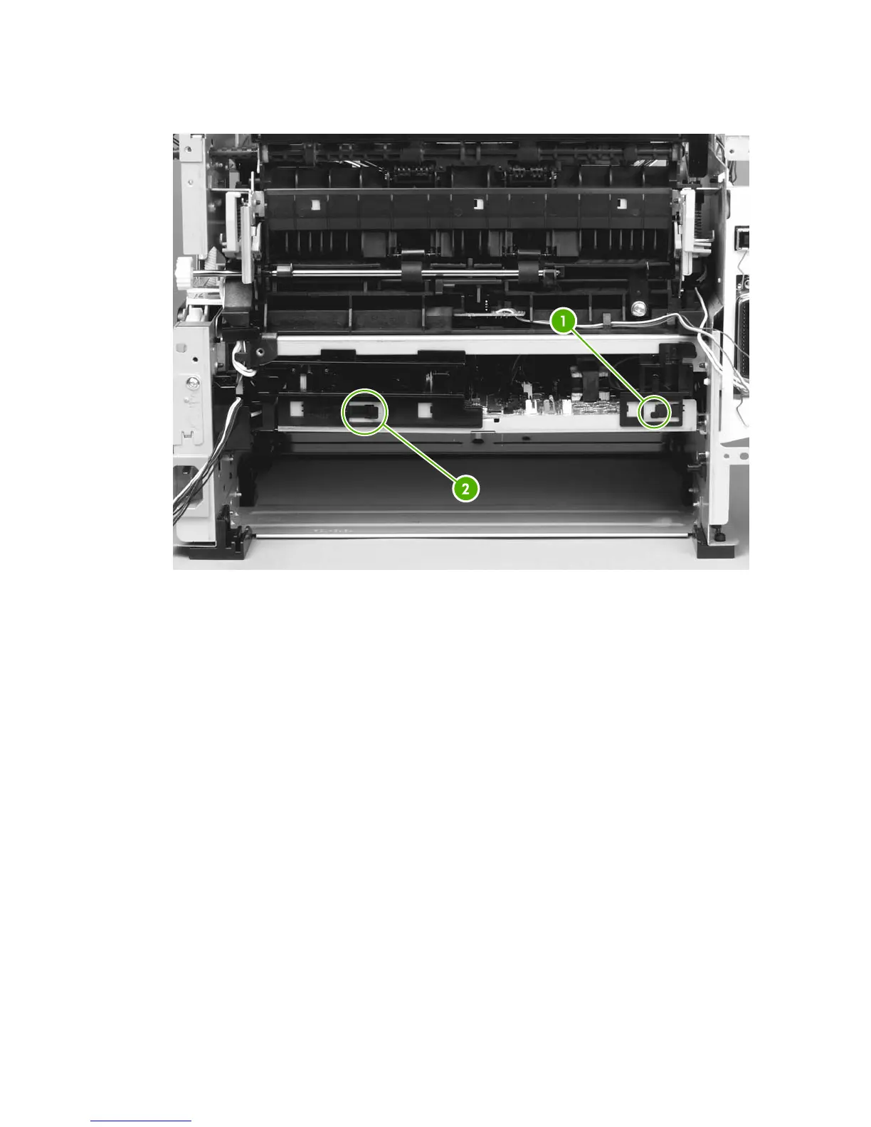 9. Pull the tab on the cable holder (2) and slide it toward the center to release it from the frame,