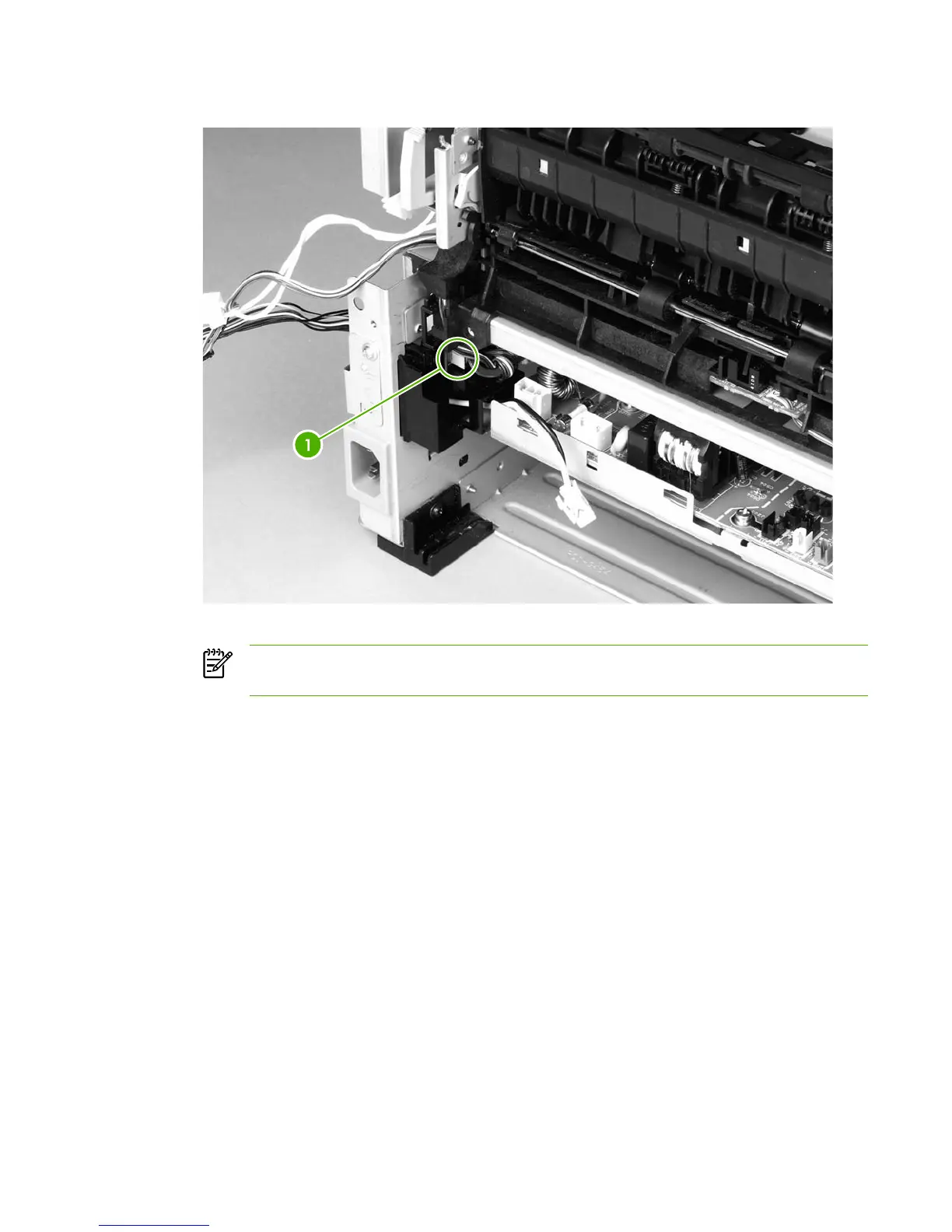 12. Disconnect one cable (1), and then unroute the cable from the cable guide.