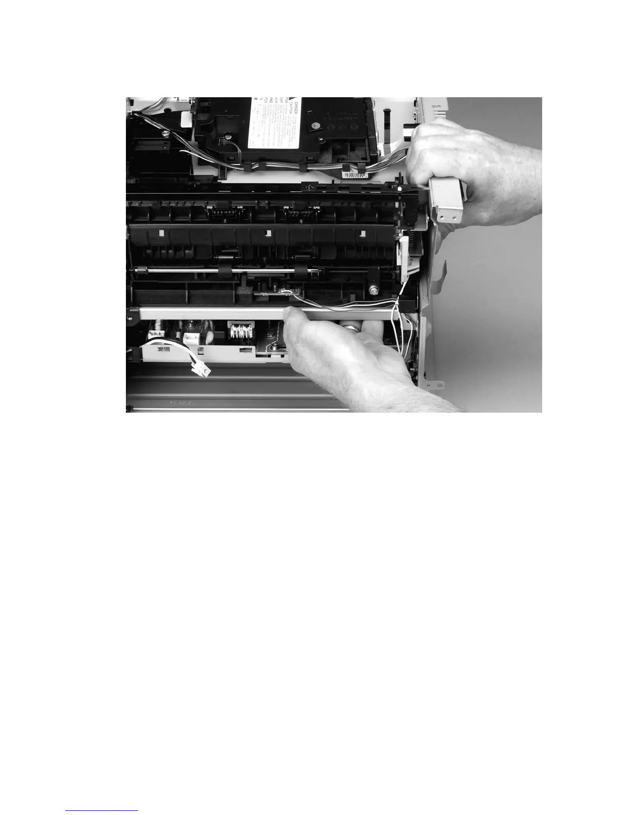 15. At the left side of the printer, pull the printer chassis from the top to spread the printer frame and
