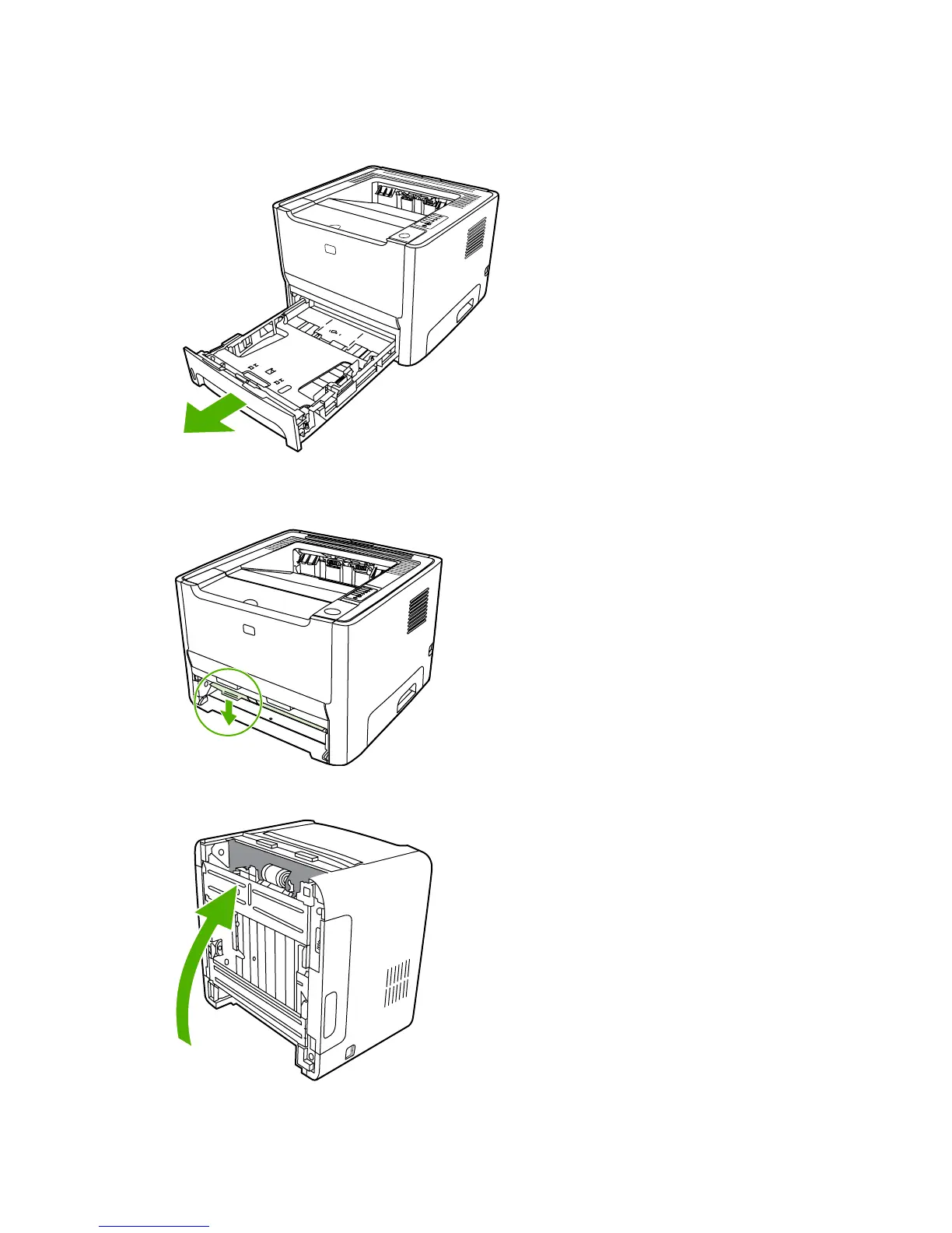2. Open the automatic two-sided path door on the front of the printer (HP LaserJet P2015d,