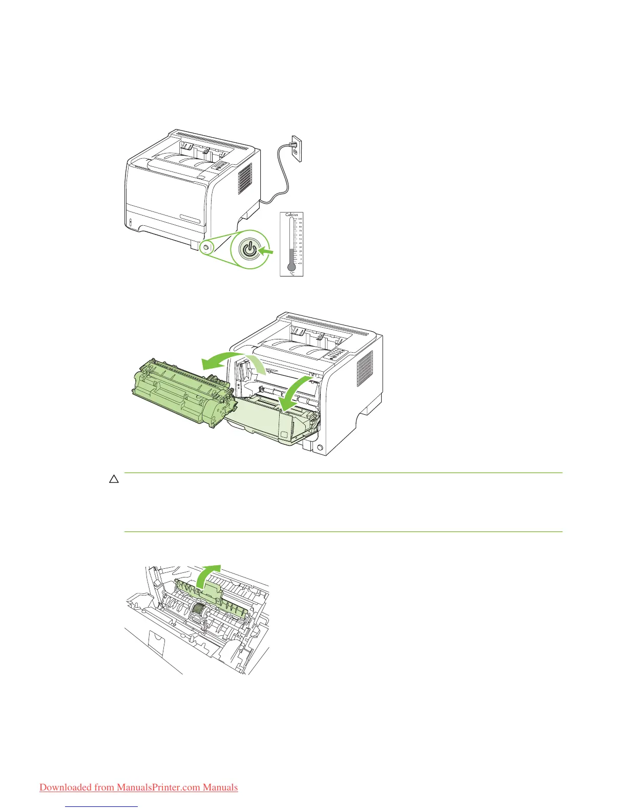 CAUTION: Do not touch the black sponge-transfer roller inside the product. Doing so can