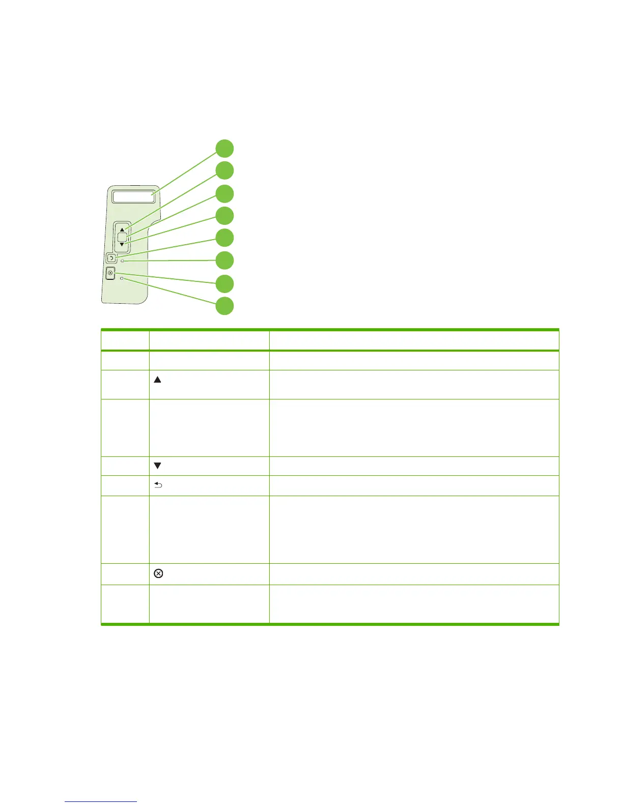 1 Control-panel display Shows status information, menus, help information, and error messages.