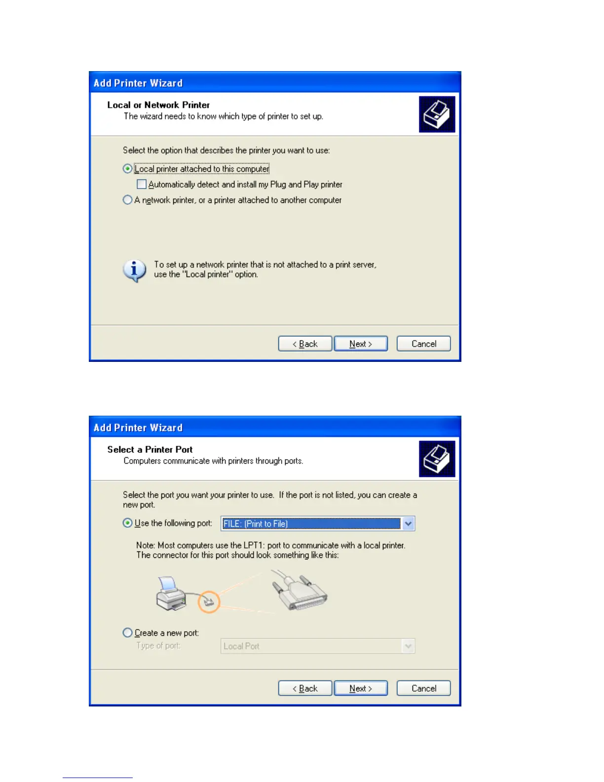 E) Select "FILE:(Print to File)" in the "Use the following port:" dropdown list