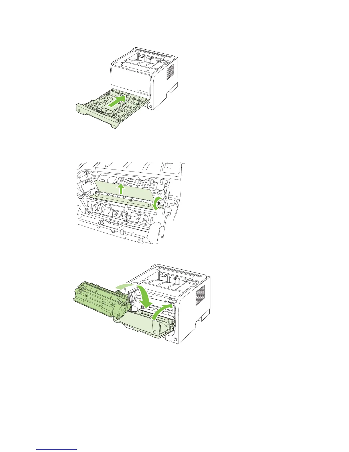 4. If no jammed paper is visible in the tray area, open the print-cartridge door, remove the print