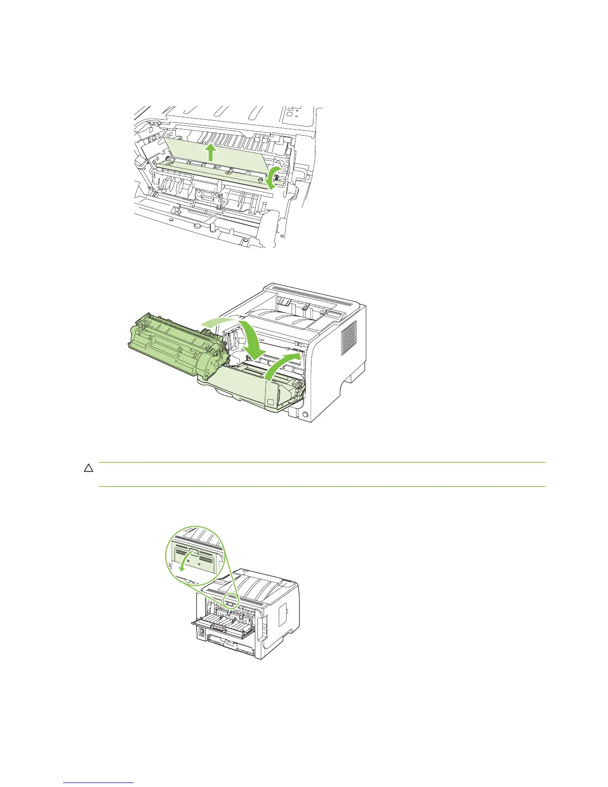 CAUTION: To avoid damaging the product, do not attempt to clear a jam in the top output bin by pulling