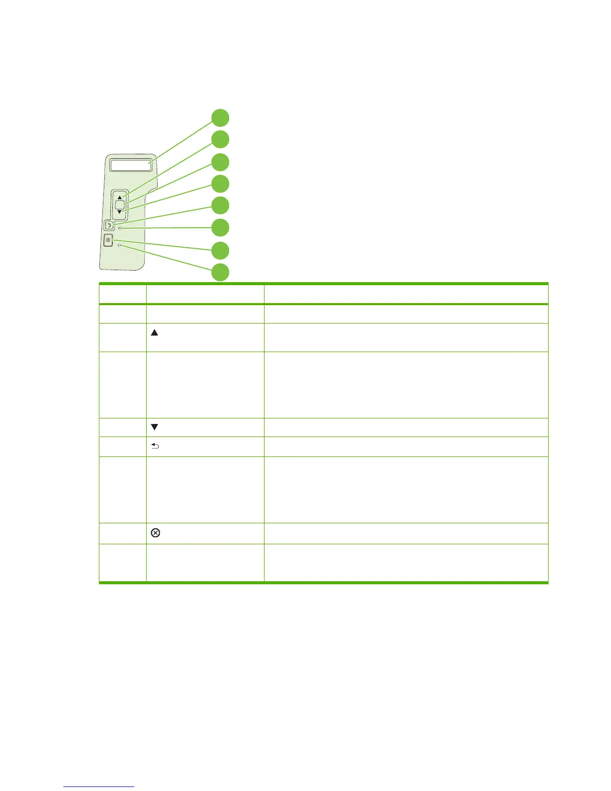 2 Up arrow Navigates to the next submenu or the next value in a menu selection list, moves