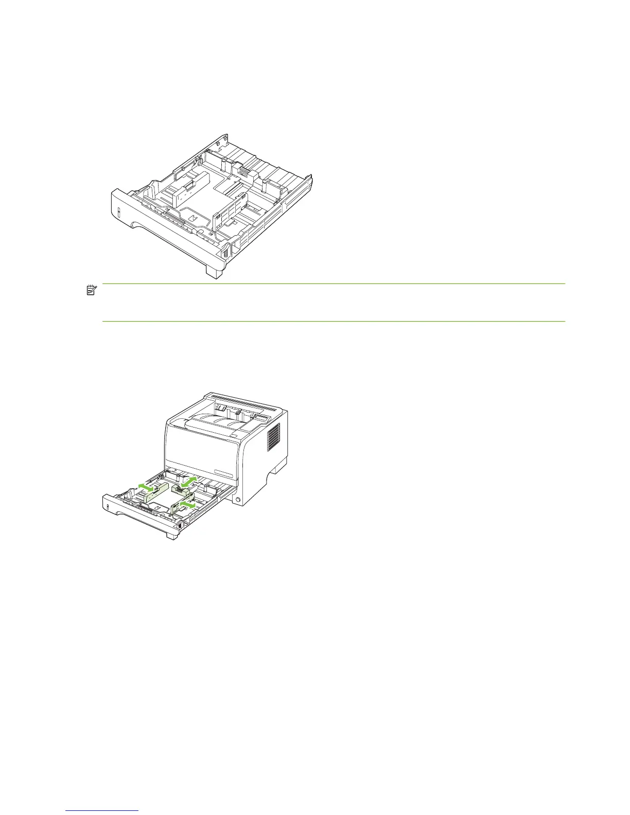 Tray 2 has side and rear media guides. When loading media, adjust the media guides to match the