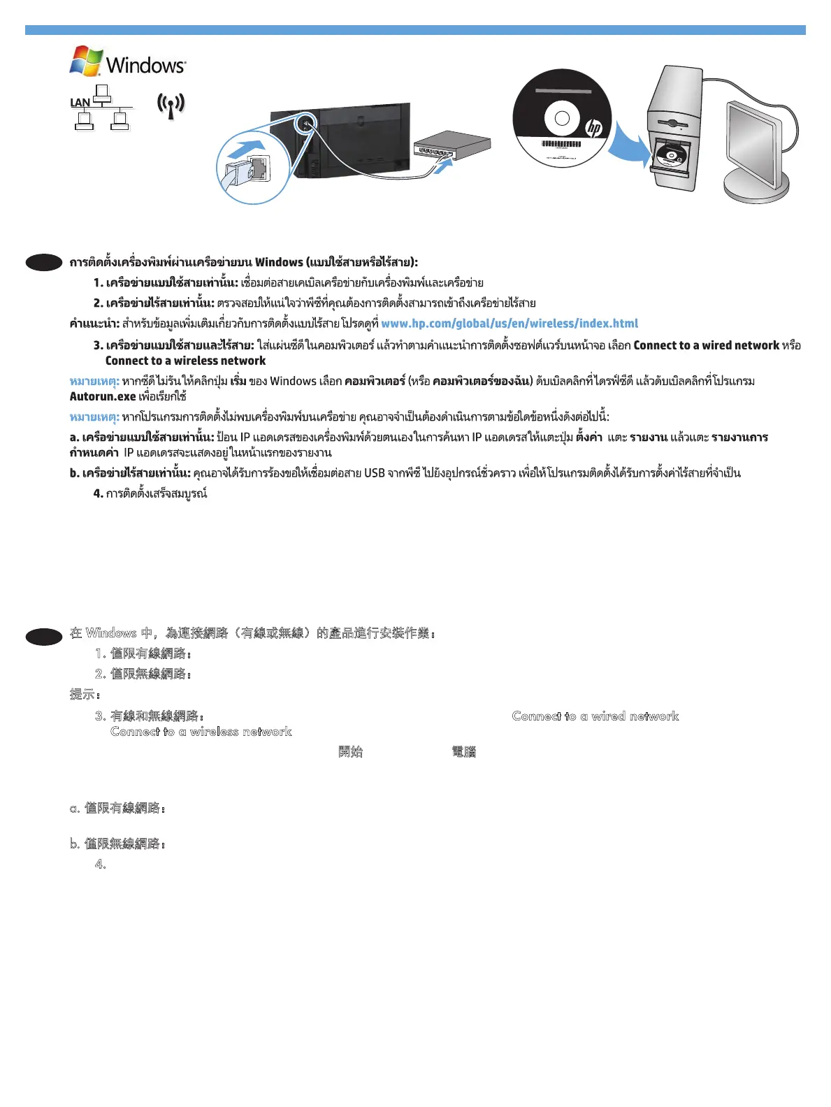 提示:如需無線安裝的詳細資訊,請前往 www.hp.com/global/us/en/wireless/index.html。