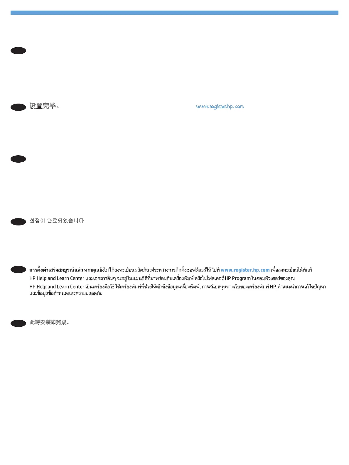 설정이 완료되었습니다. 소프트웨어 설치 도중 제품을 등록하지 않은 경우 www.register.hp.com으로 이동하여 지금 등록하십시오.