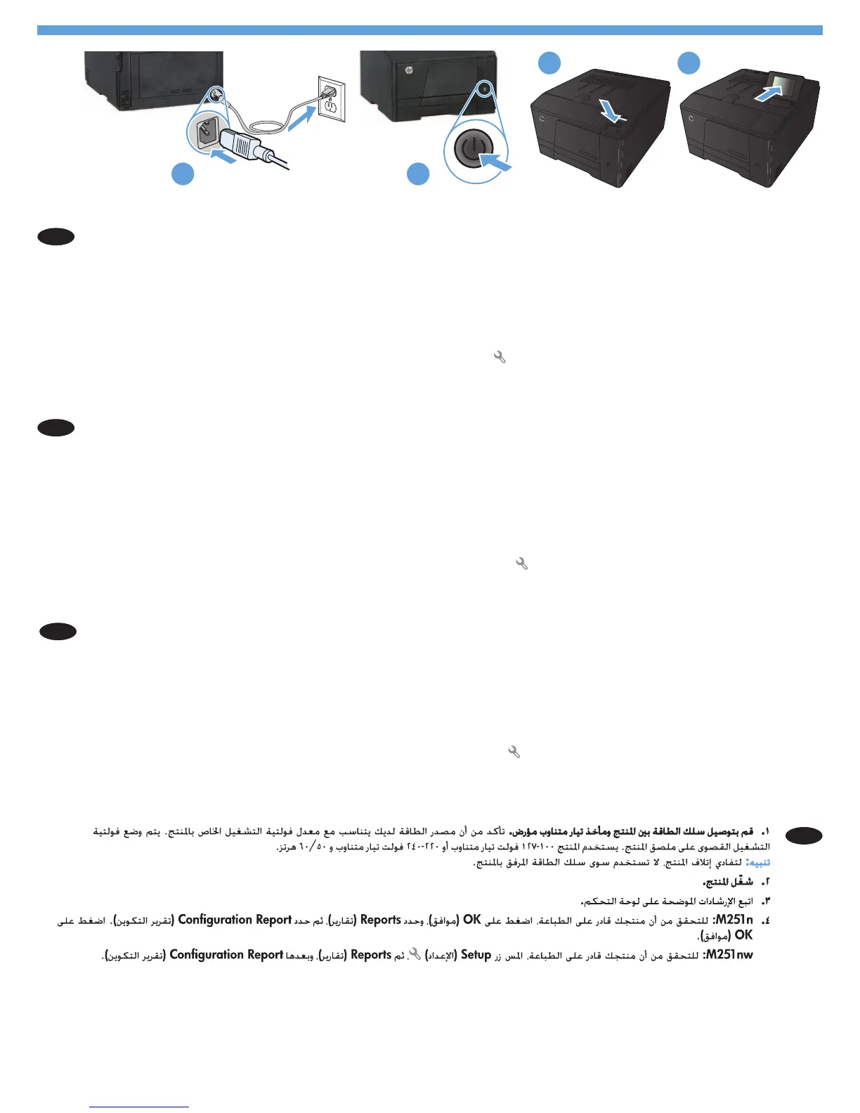 4. M251n: Du kan kontrollera att produkten kan skriva ut genom att du trycker på OK, väljer Rapporter och därefter väljer