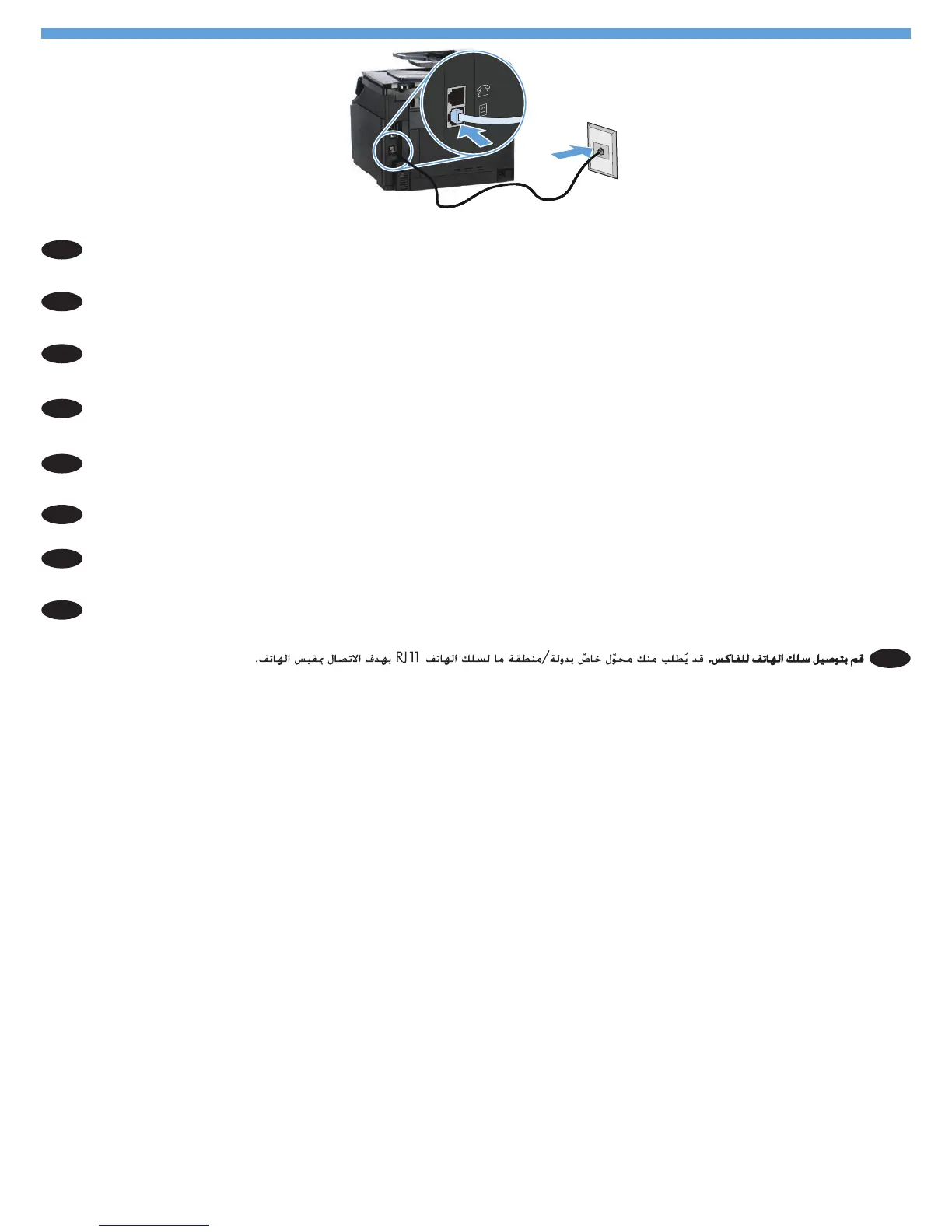 Conectaţi cablul telefonic pentru fax. Poate necesar un adaptor specic ţării/regiunii pentru a conecta cablul de telefon RJ11 la jacul