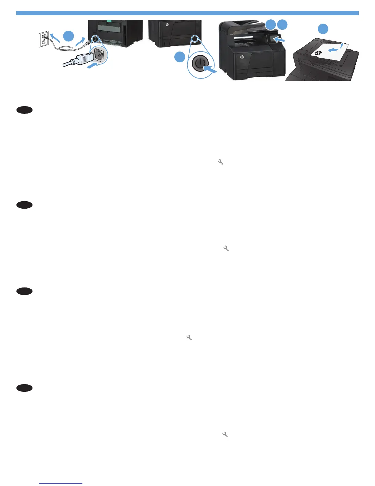 1. Csatlakoztassa a tápkábelt a készülékhez és egy földelt tápaljzathoz. Ellenőrizze, hogy a készülék tápellátása megfelel-e a készülék