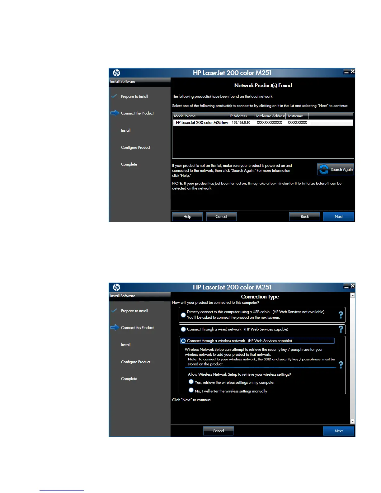 Figure 2-76 Software installation — Connection Type screen for wireless connected