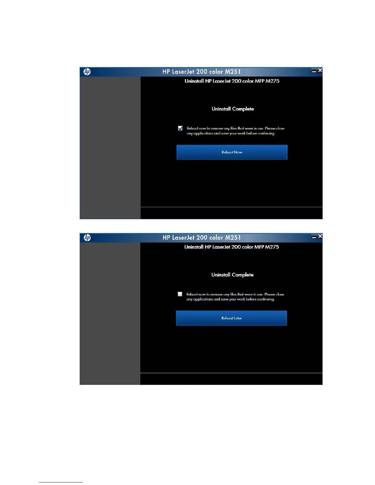 Figure 2-85 HP Uninstaller utility — Reboot Later button