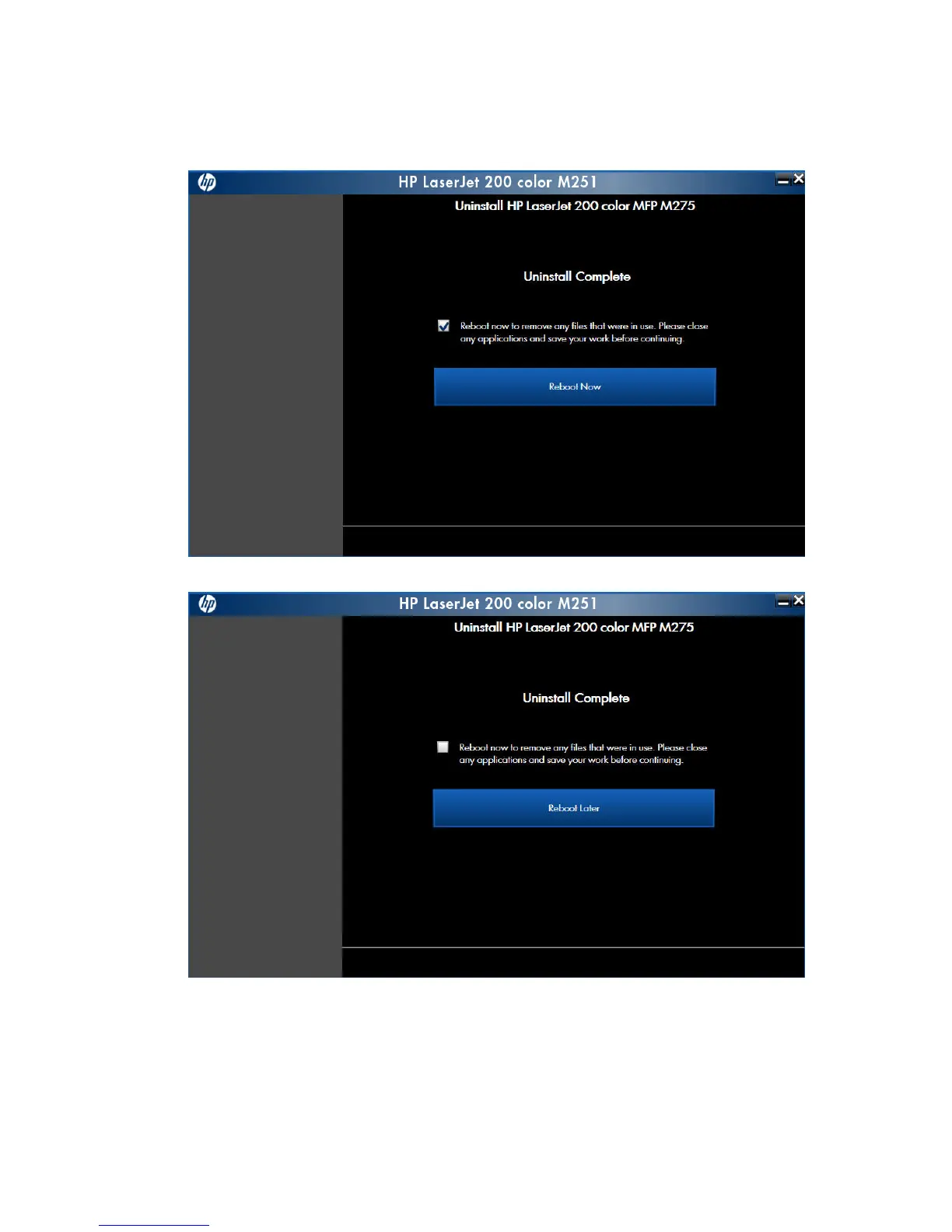 Figure 2-90 Software uninstall — Reboot Later button