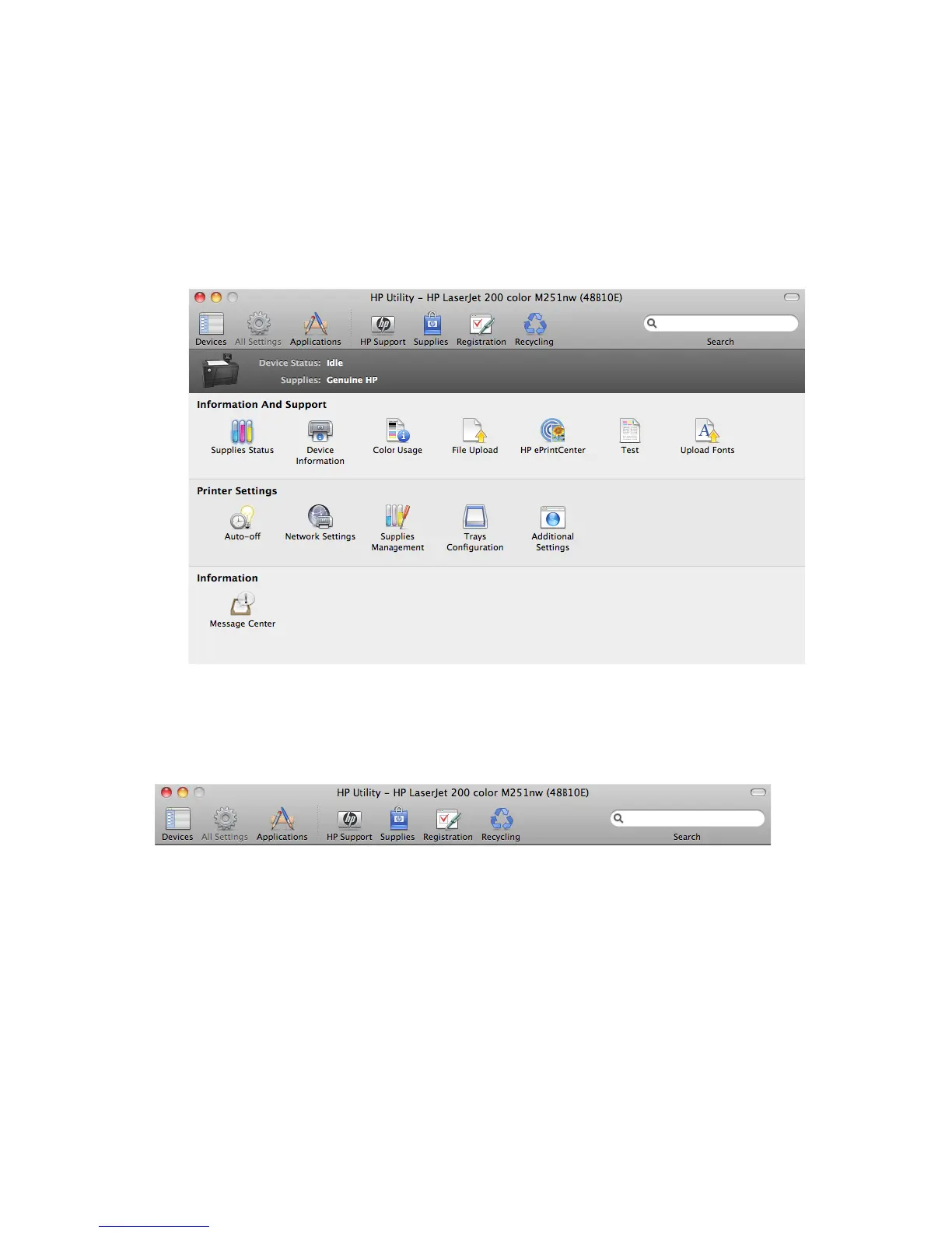 Applications: Click this button to manage which HP tools or utilities appear in the Dock.