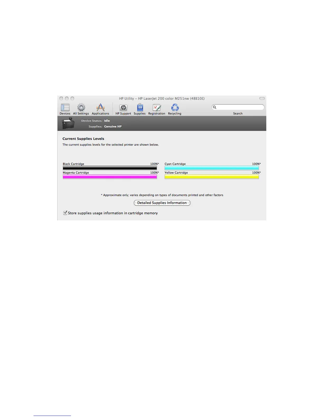 Click the Detailed Supplies Information button to open the Supplies Status details screen.