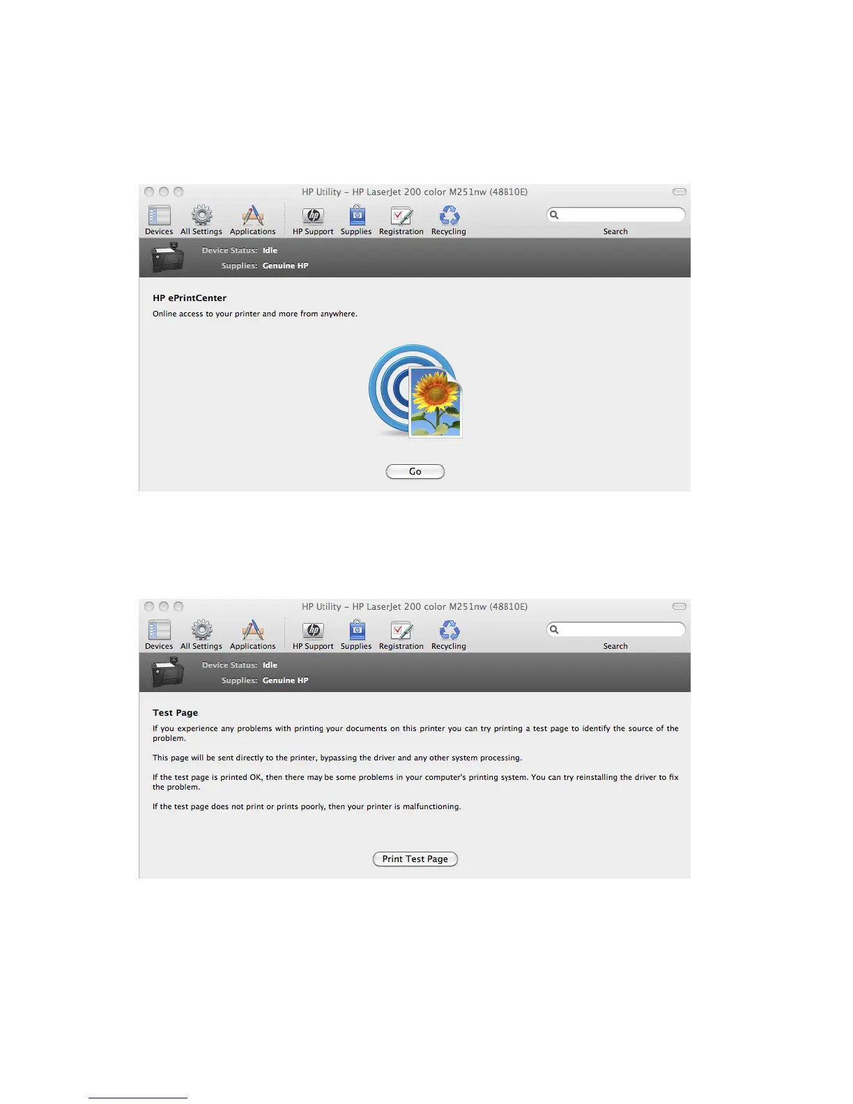 Figure 3-7 HP ePrintCenter screen