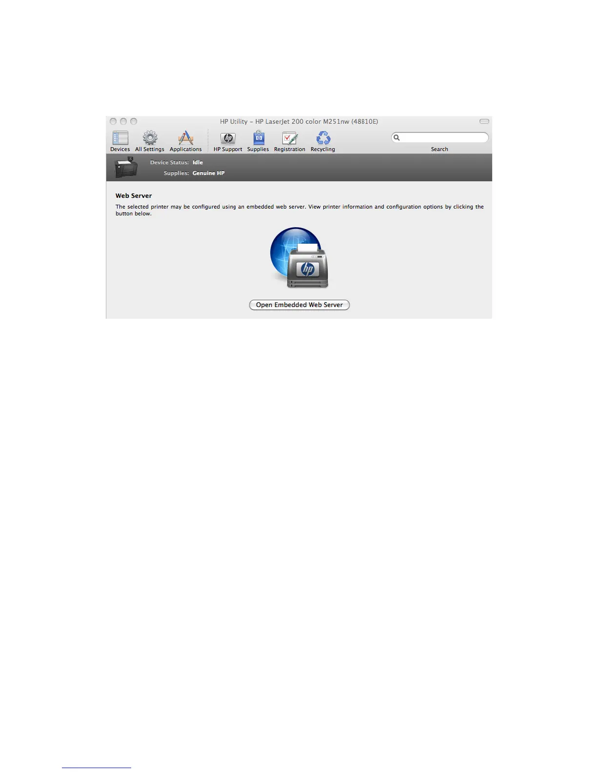 To open the HP EWS, click the Open Embedded Web Server button.