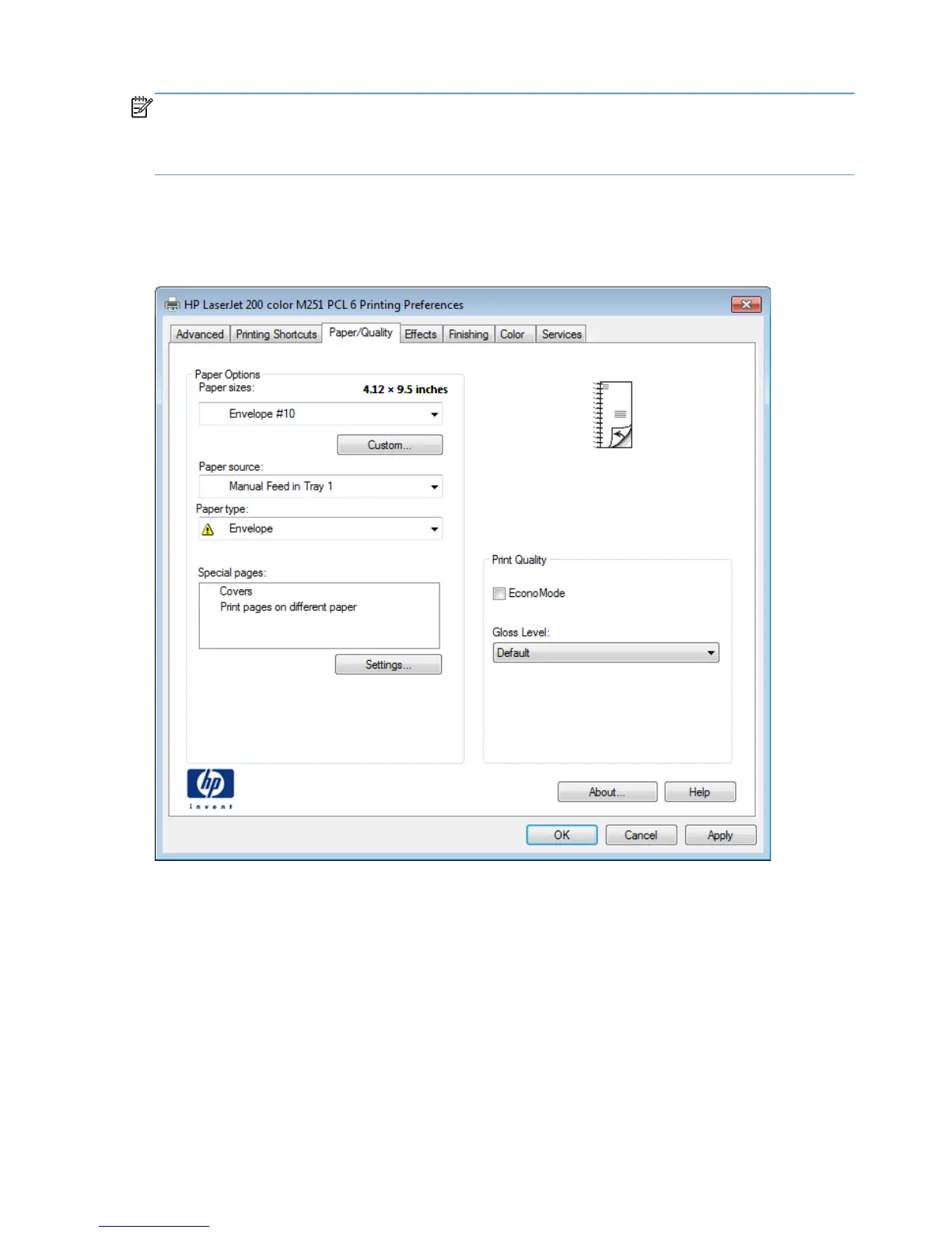 result in warning messages. For example, duplexing is not possible when printing an envelope. The