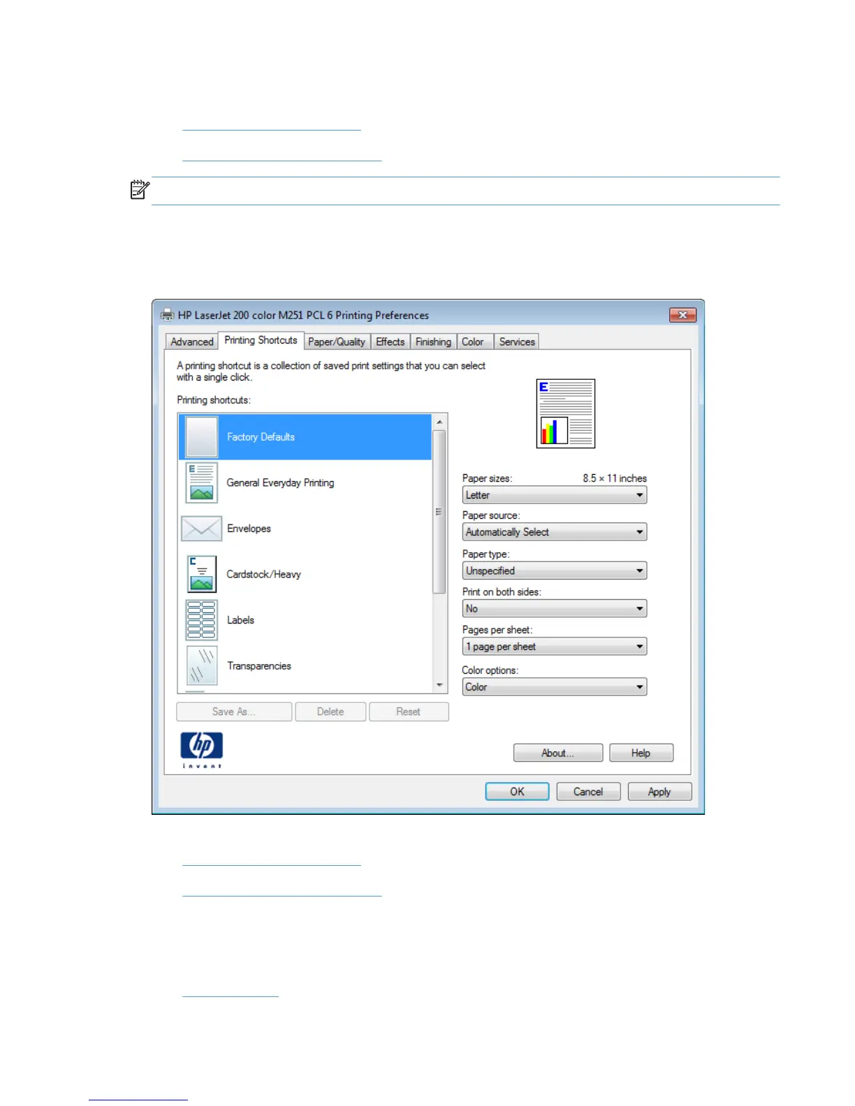 NOTE: The Printing Shortcuts tab is located on the Printing Preferences tab set.