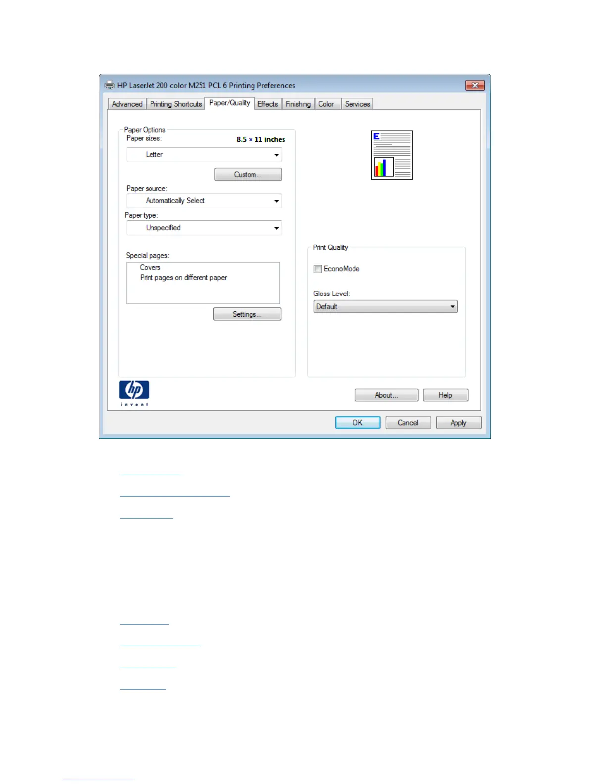 The settings specified in the Paper Options group box on the Paper/Quality tab apply to all of the