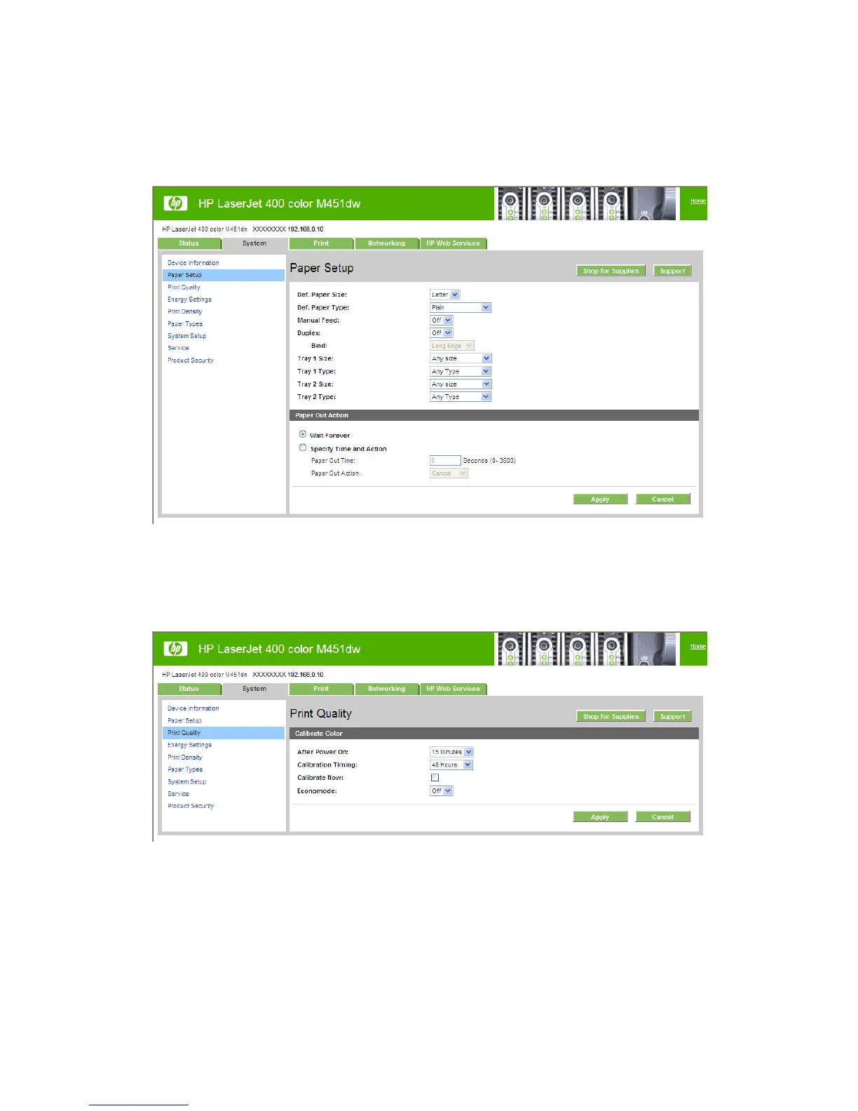 Figure 2-25 HP Device Toolbox, System tab – Print Quality page