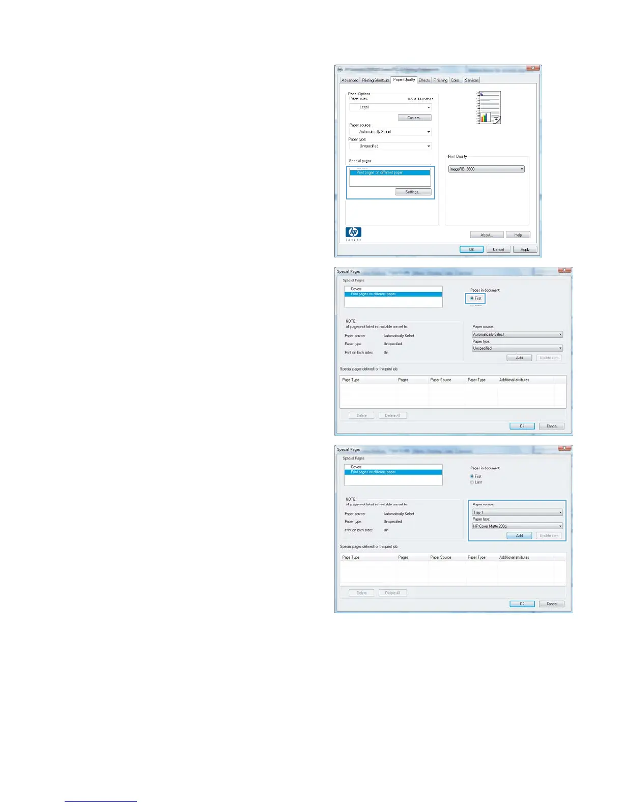 4. In the Special pages area, click the Print