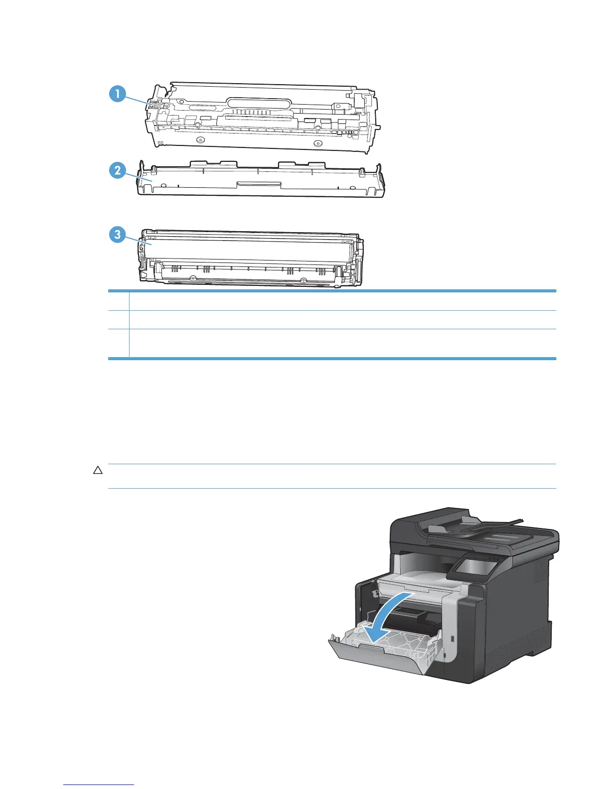 CAUTION: If toner gets on any clothing, wipe it off with a dry cloth and wash the clothing in cold water.