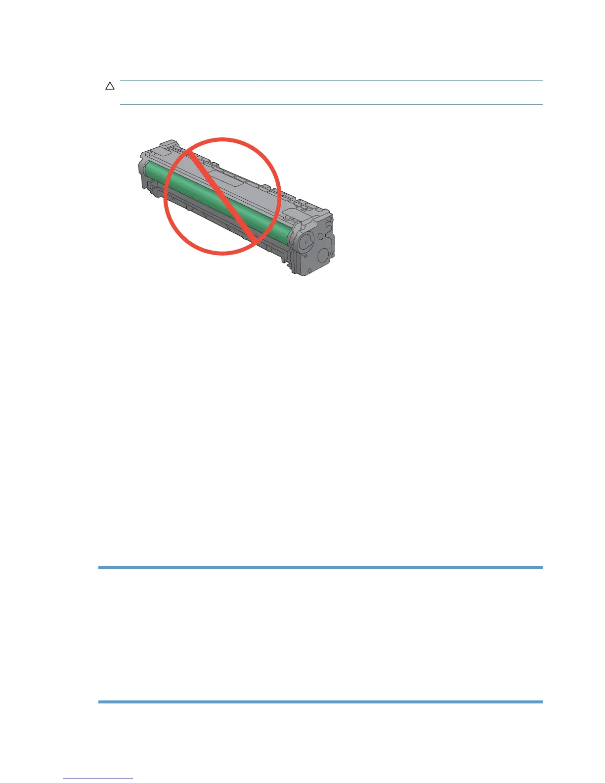 CAUTION: Do not touch the green roller (imaging drum) on the bottom of the cartridge.