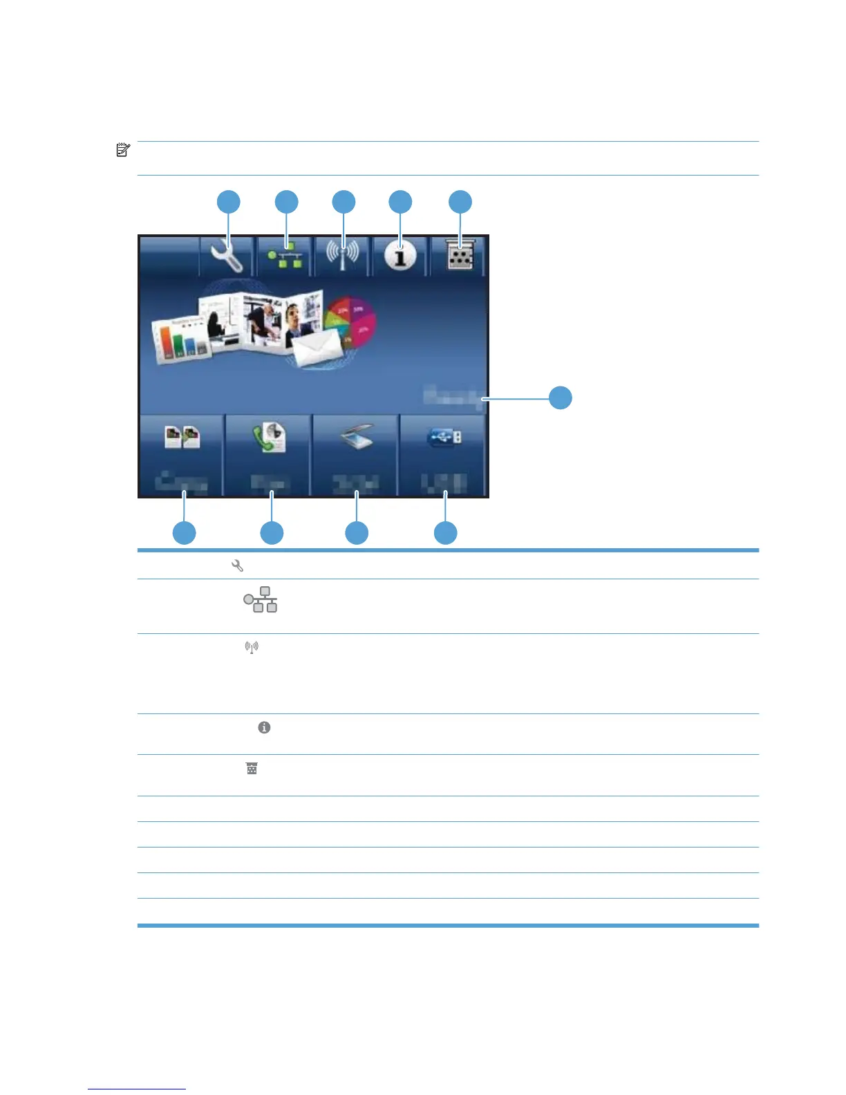 4 Information button: provides product status information. From the status summary screen, you can print the