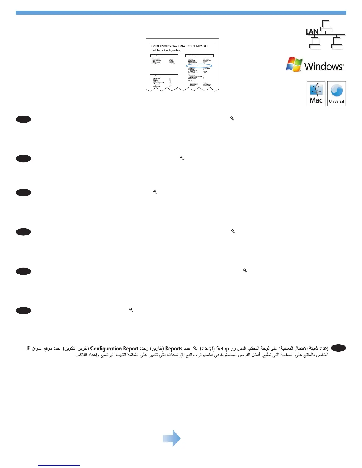 conguração. Localize o endereço IP do produto na página impressa. Insira o CD no computador e siga as instruções na tela para