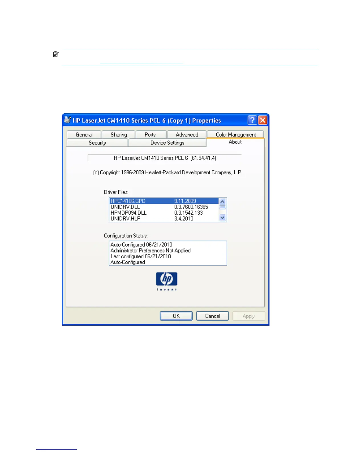 indicates whether the driver was autoconfigured, whether administrator preferences were set, the date
