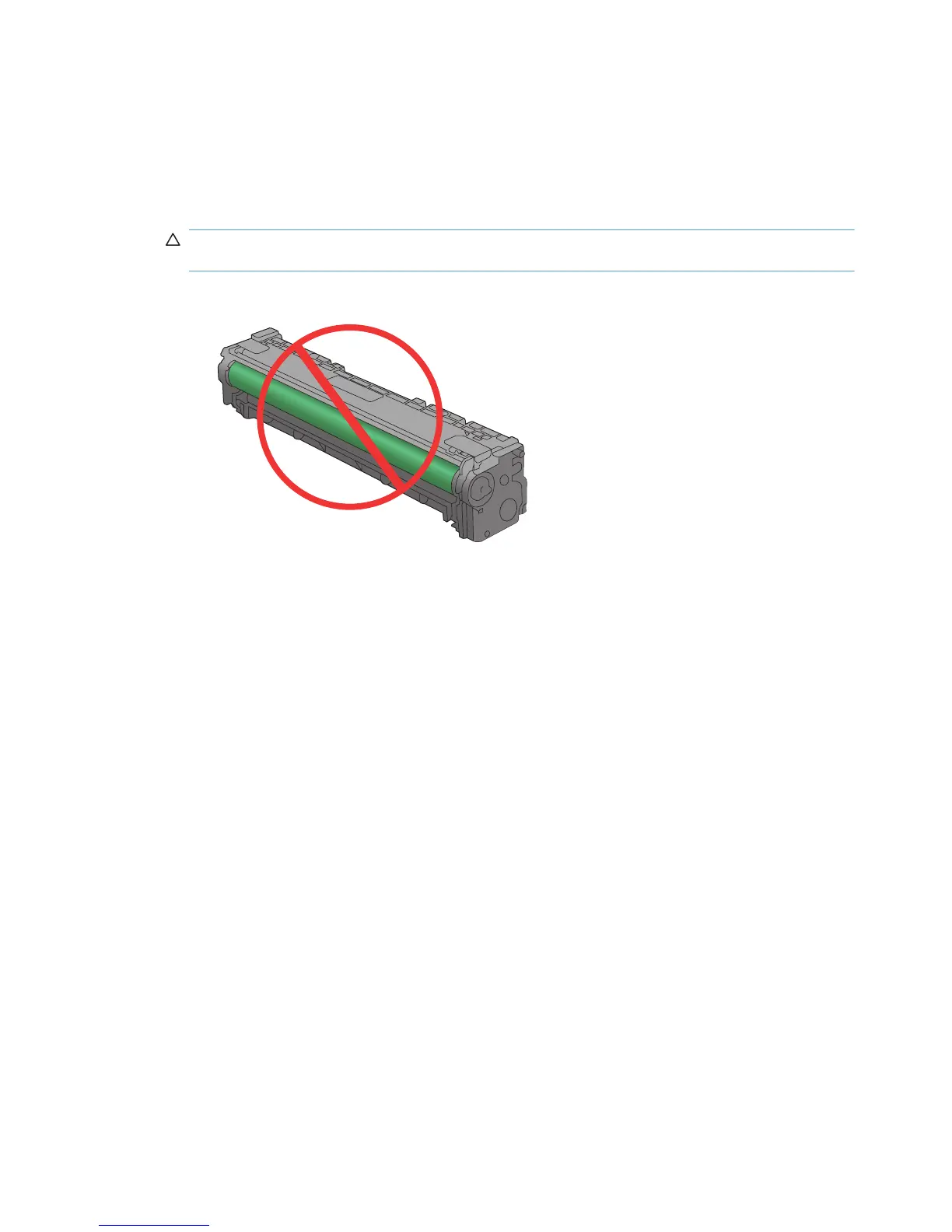 CAUTION: Do not touch the green roller (imaging drum) on the bottom of the cartridge.