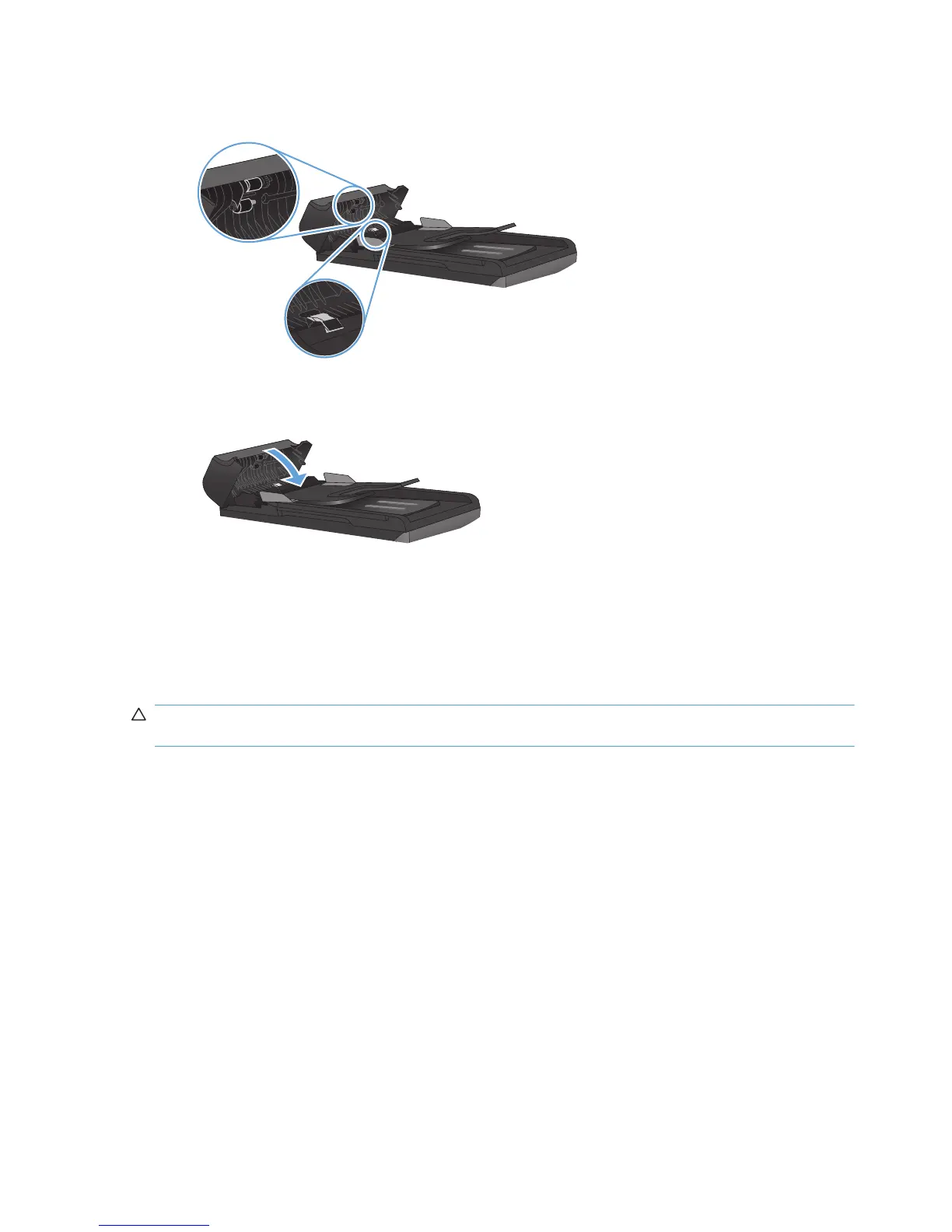 2. Use a moist, lint-free cloth to wipe both pickup rollers and the separation pad to remove dirt.