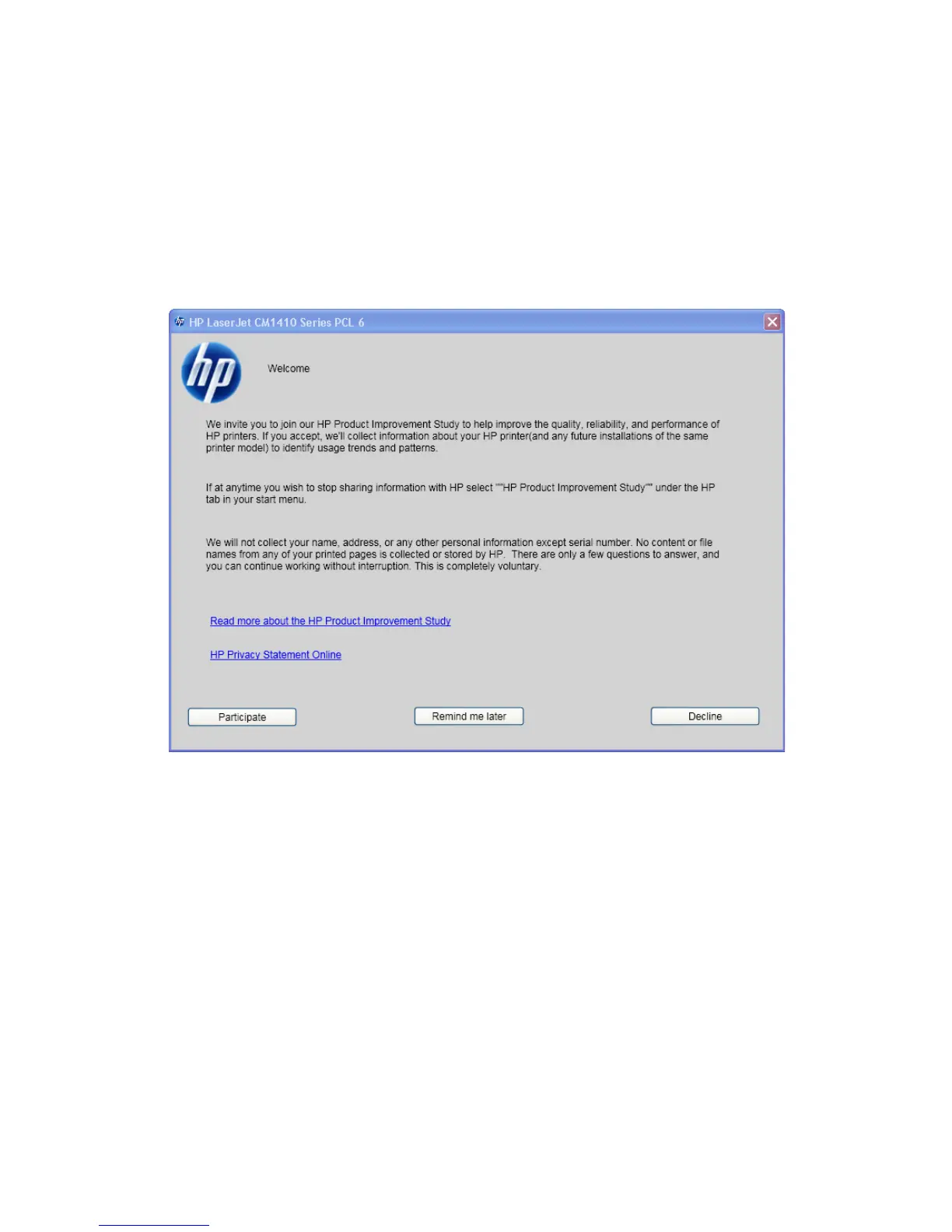 After the product is installed, you have the option of participating in HP's voluntary program for