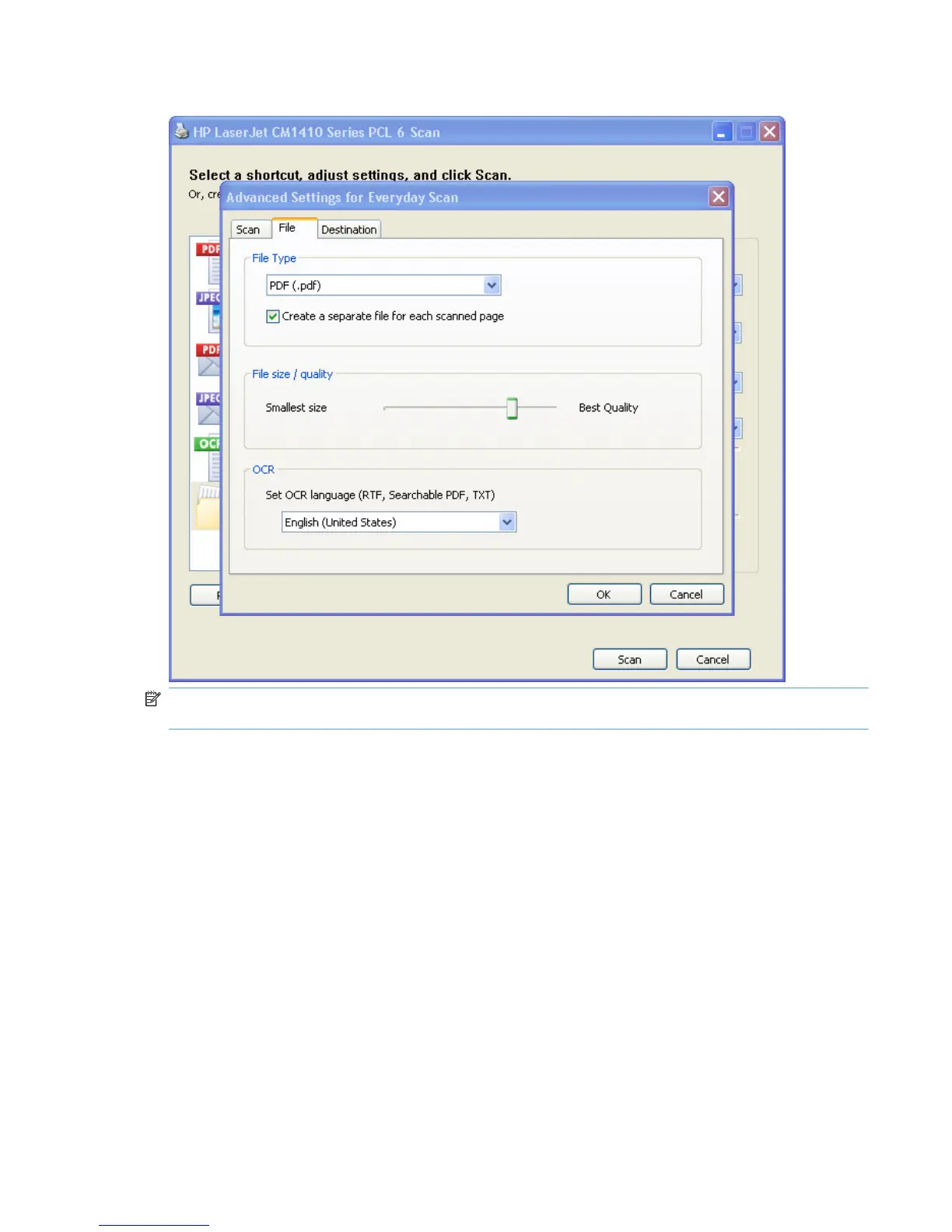 Scan software dialog boxes.