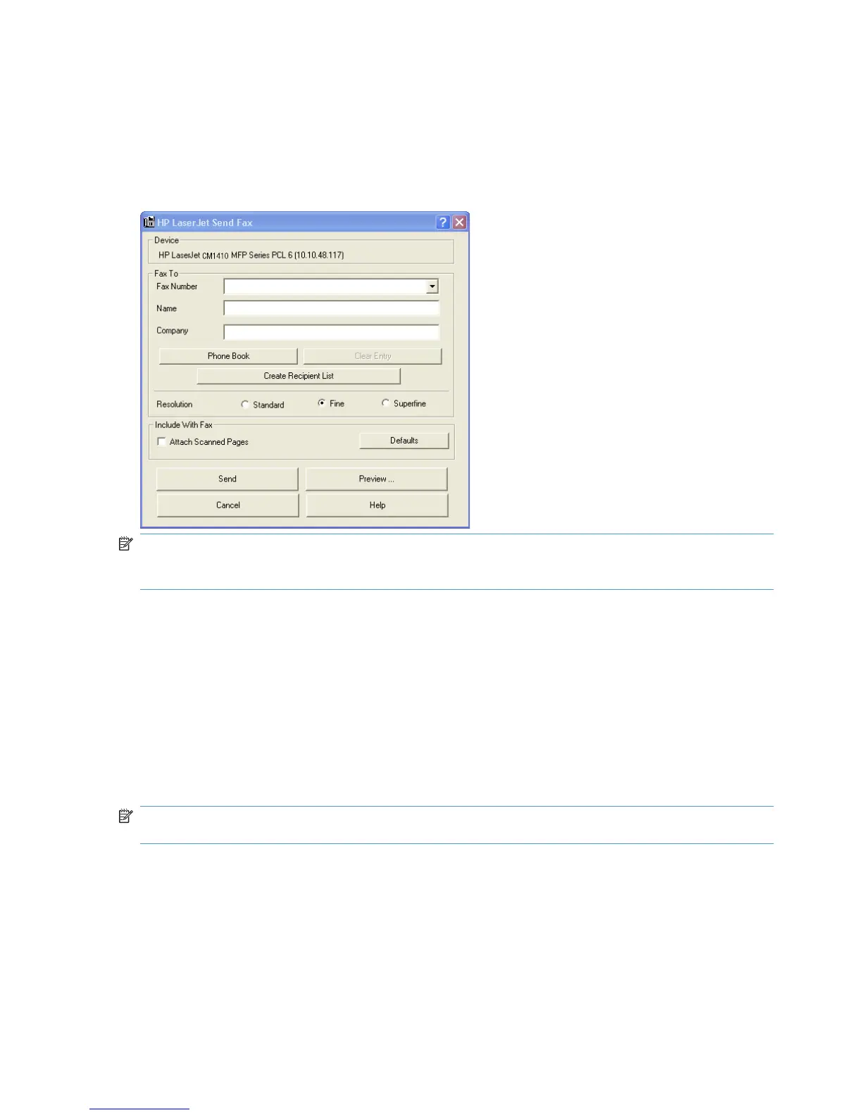 Figure 2-5 HP LaserJet Send Fax dialog box – user interface