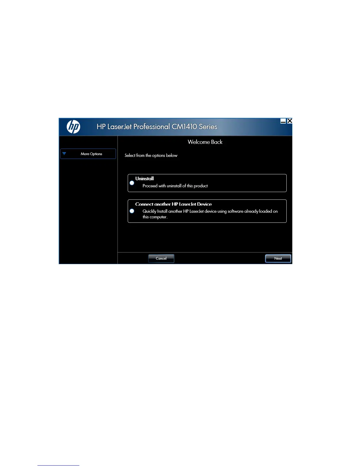 Connect another HP LaserJet Device. Click this option to quickly install another HP product