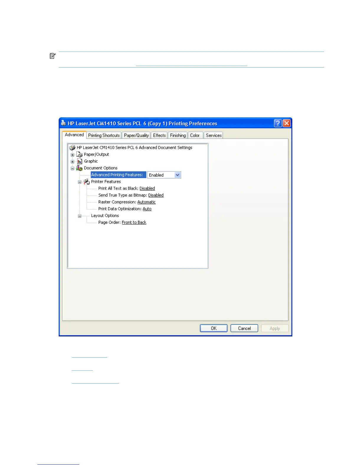 NOTE: The Advanced tab is located on the Printing Preferences tab set. For information about