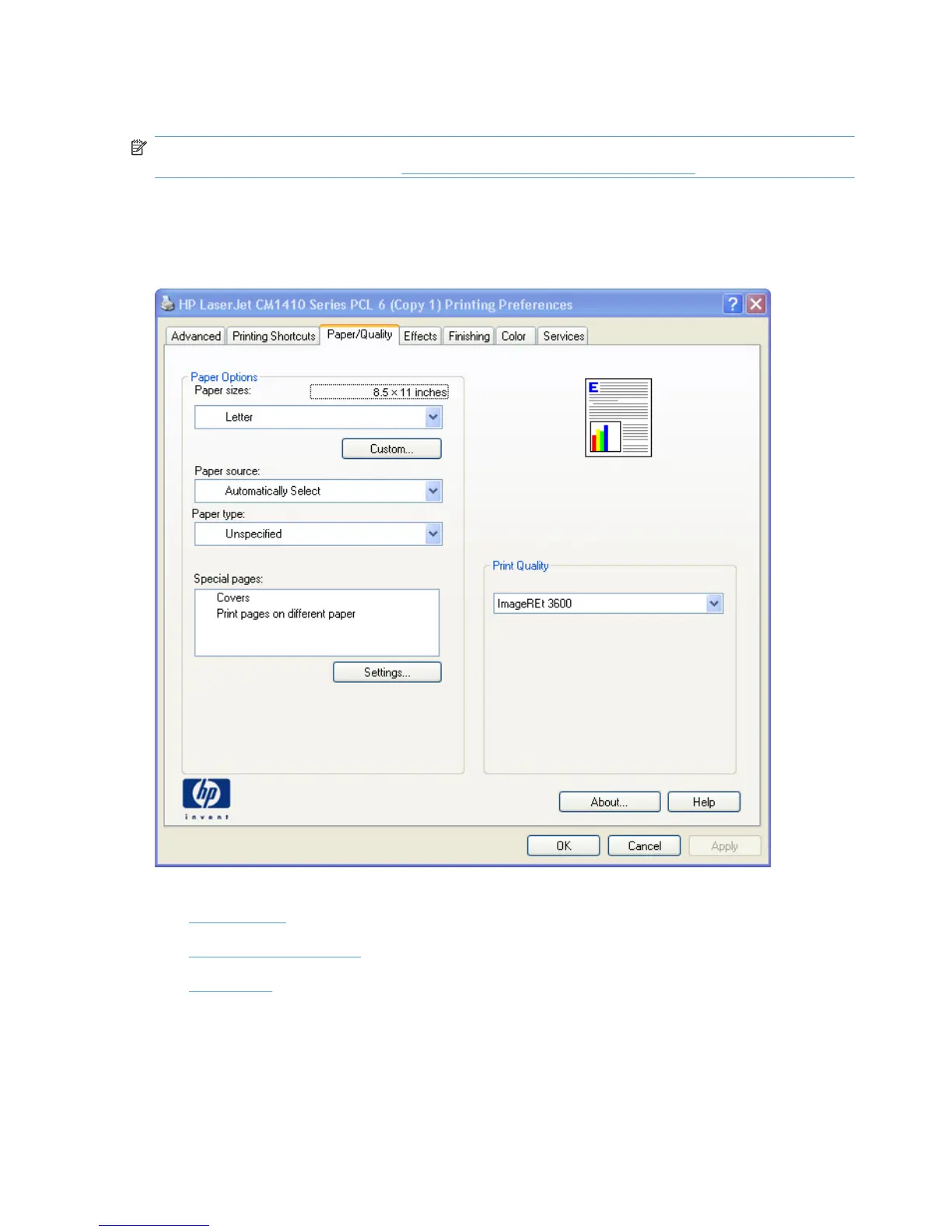 NOTE: The Paper/Quality tab is located on the Printing Preferences tab set. For information