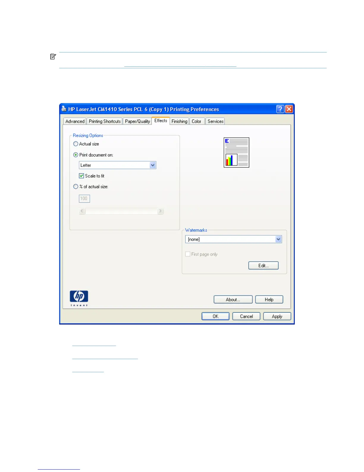 NOTE: The Effects tab is located on the Printing Preferences tab set. For information about how