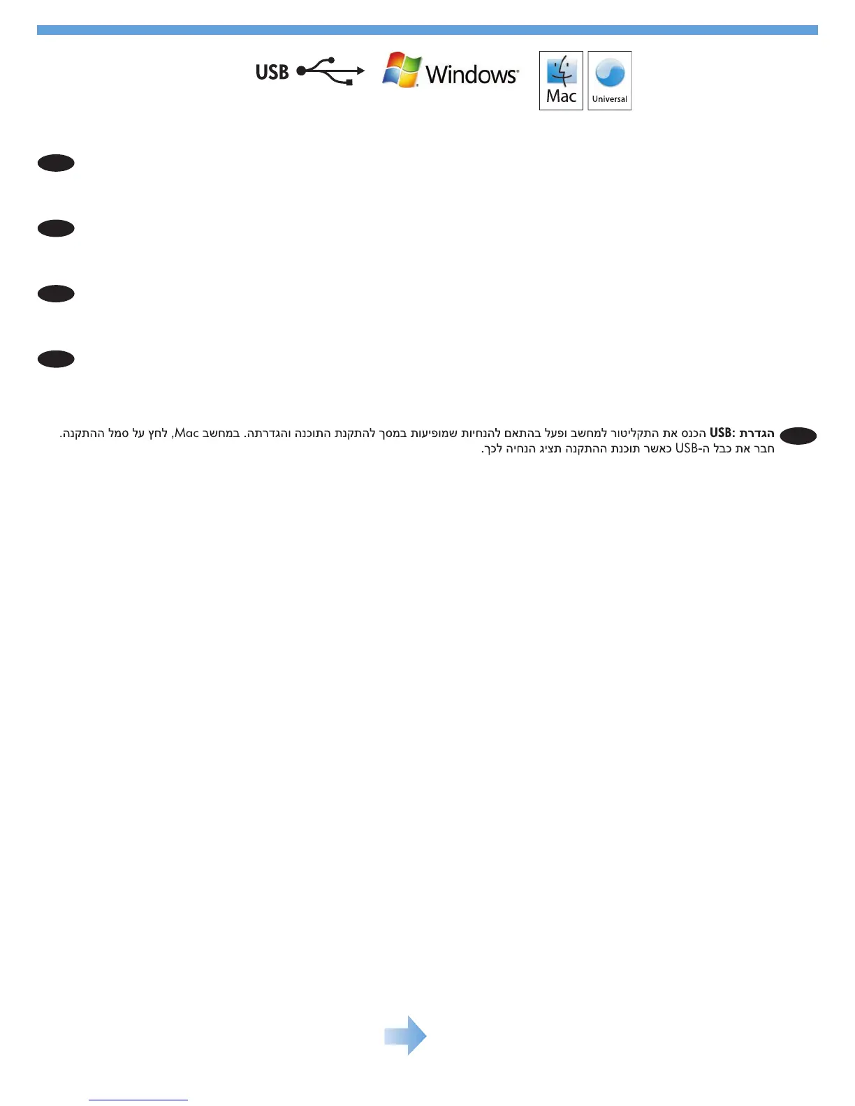 USB setup: Insert the CD into the computer and follow the instructions for software installation and setup. For Mac, click the installation