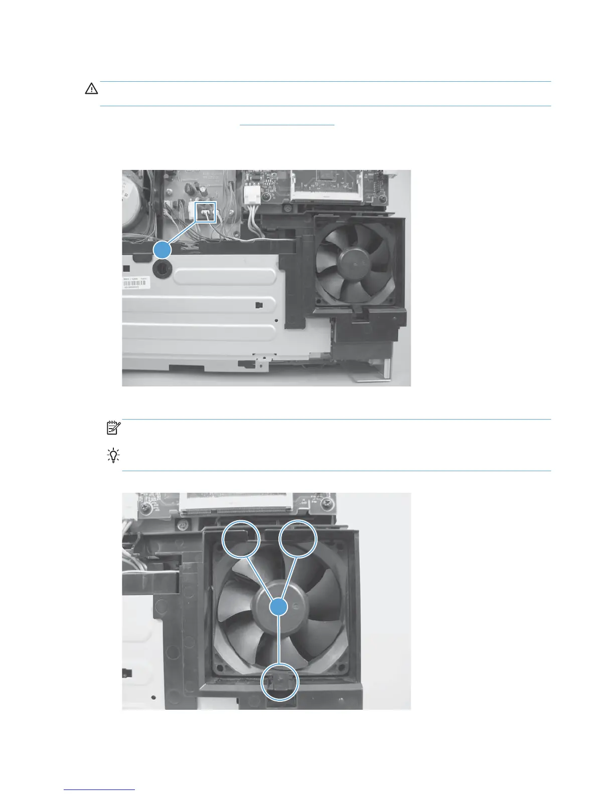 CAUTION: When the fan is reinstalled, it must pull air into the product. The air-flow indicator arrow