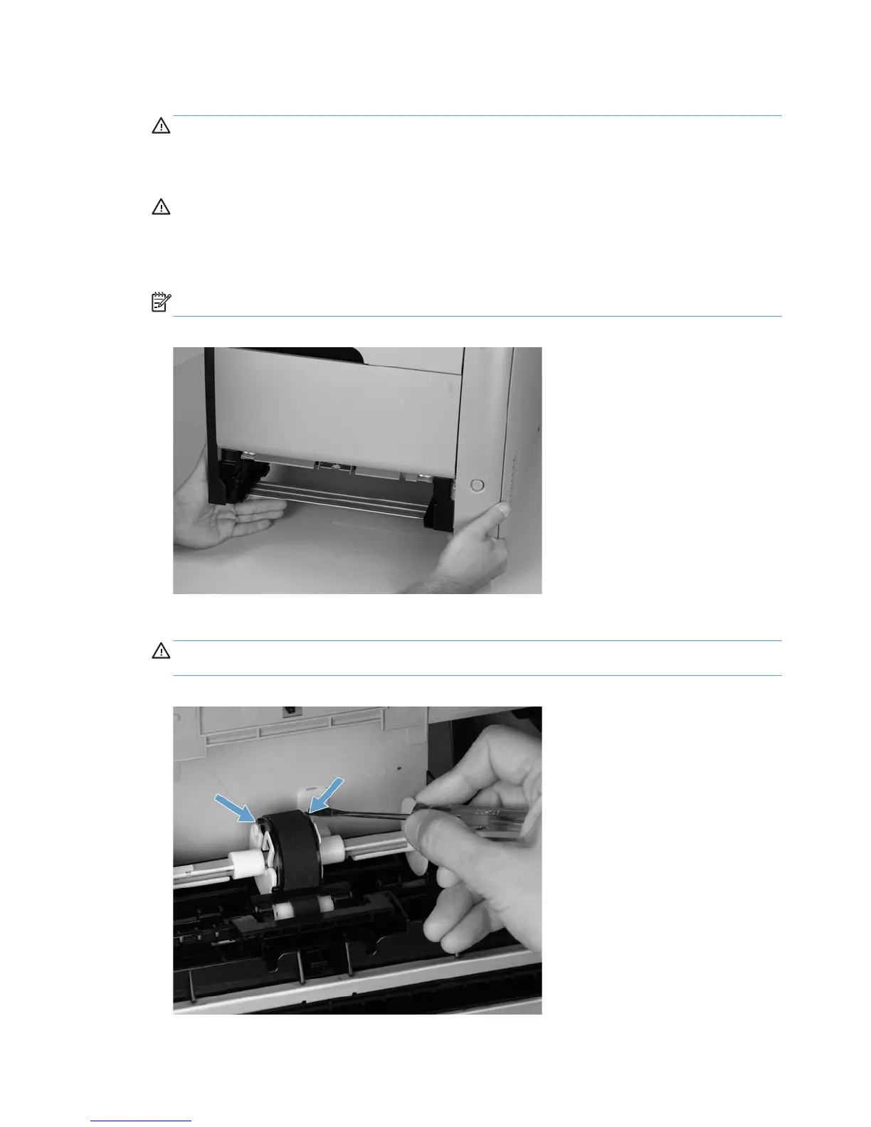 3. Use a precision slotted (flat head) screwdriver to release two locking tabs and remove the pickup roller.