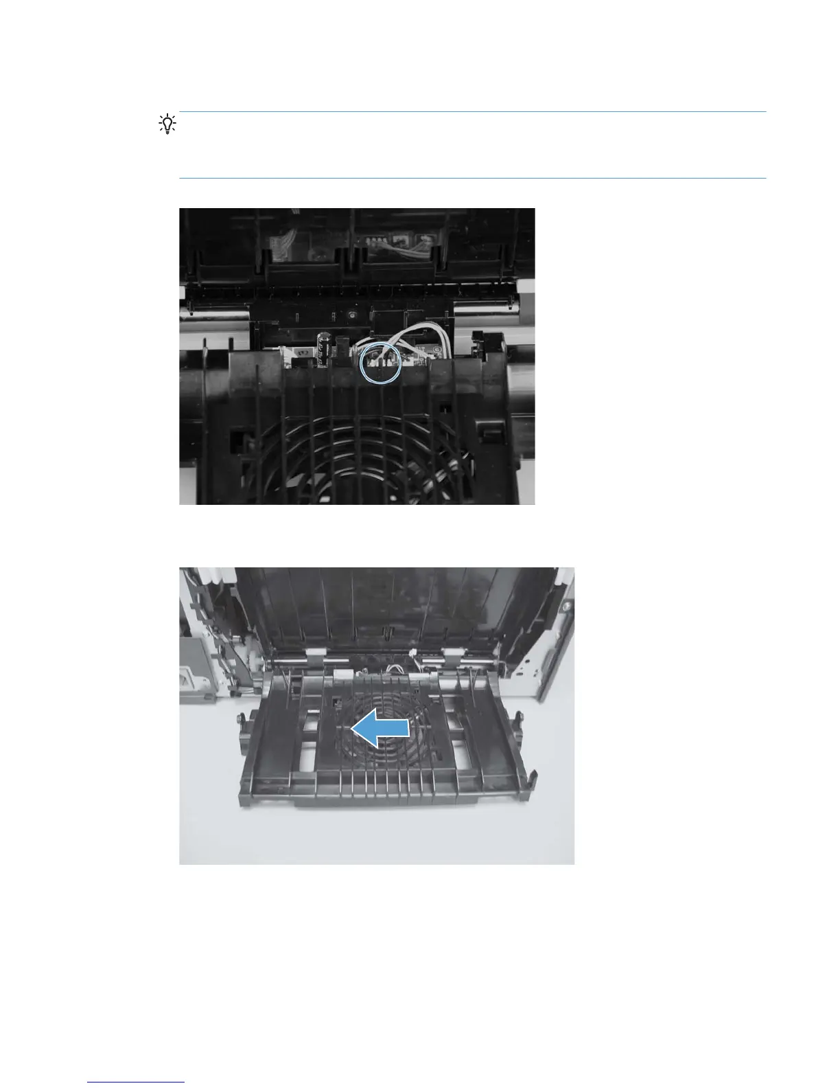 3. Slide the assembly toward the power cable side of the product to release the hinge pin.