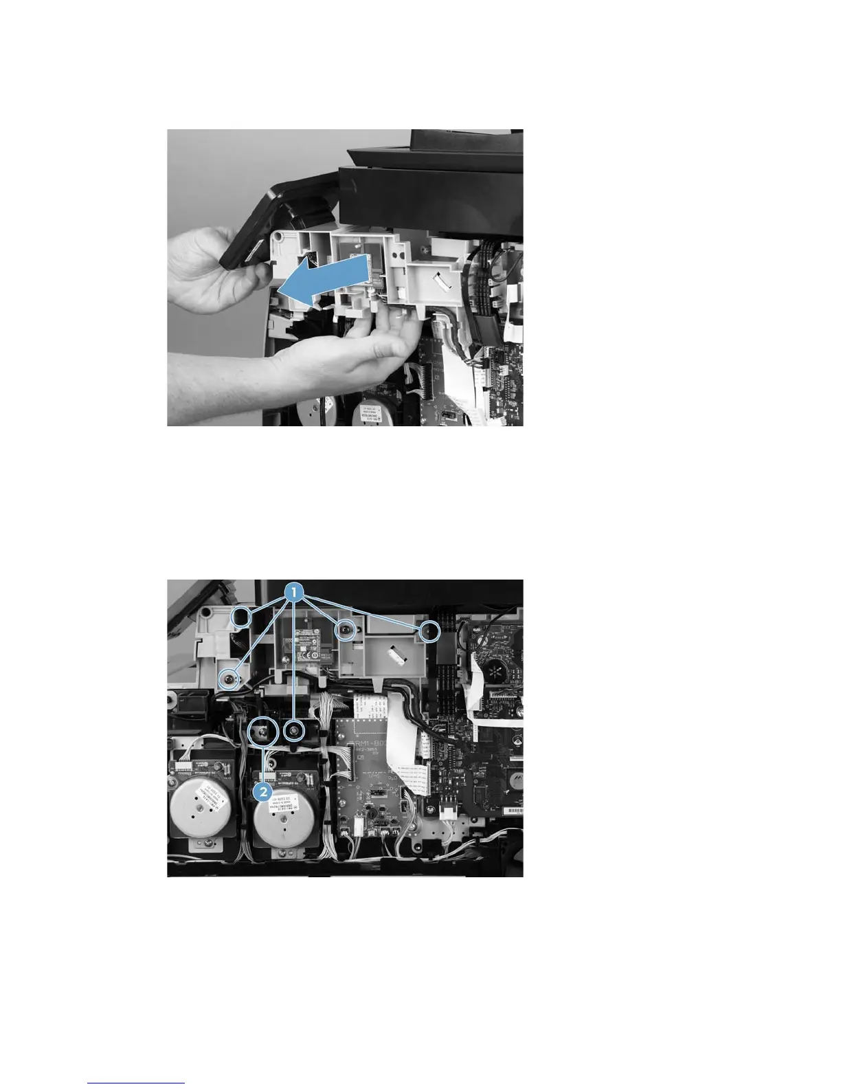 5. Slide the control panel right-arm mount to the right to remove it from the scanner chassis.