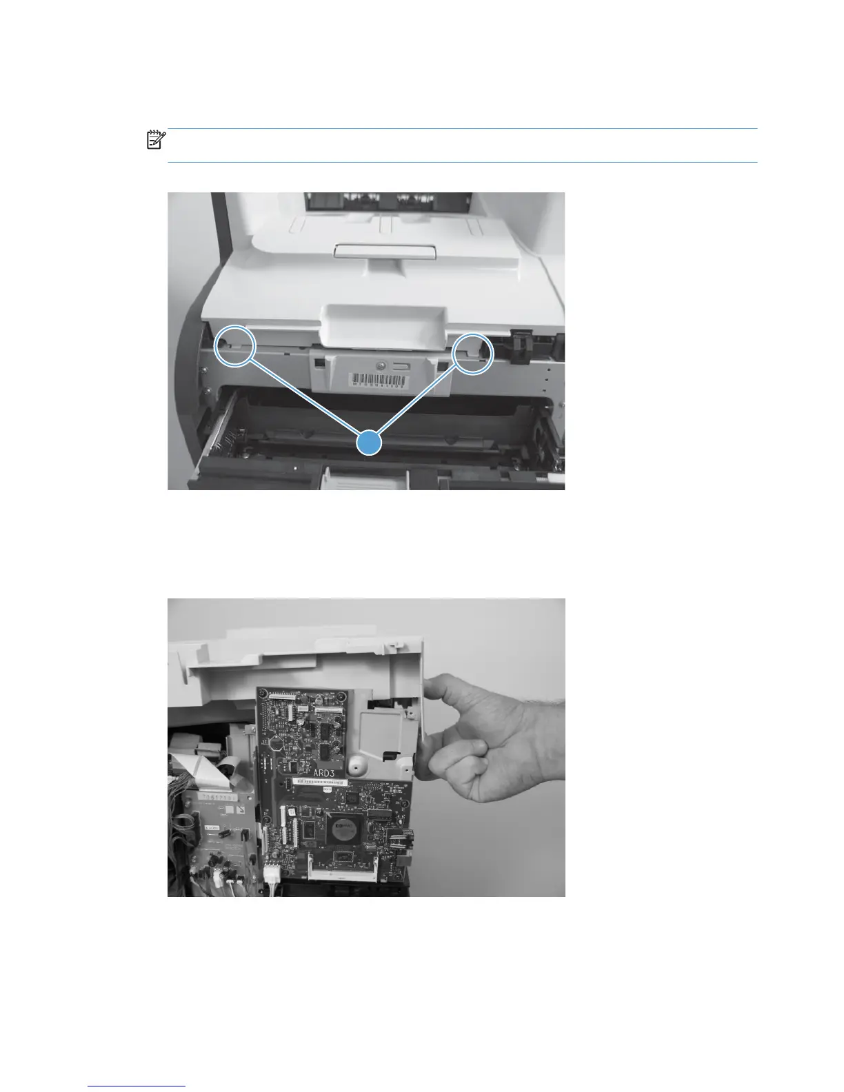 NOTE: Make sure that the right-front edge of the upper cover (where the product right-front cover will