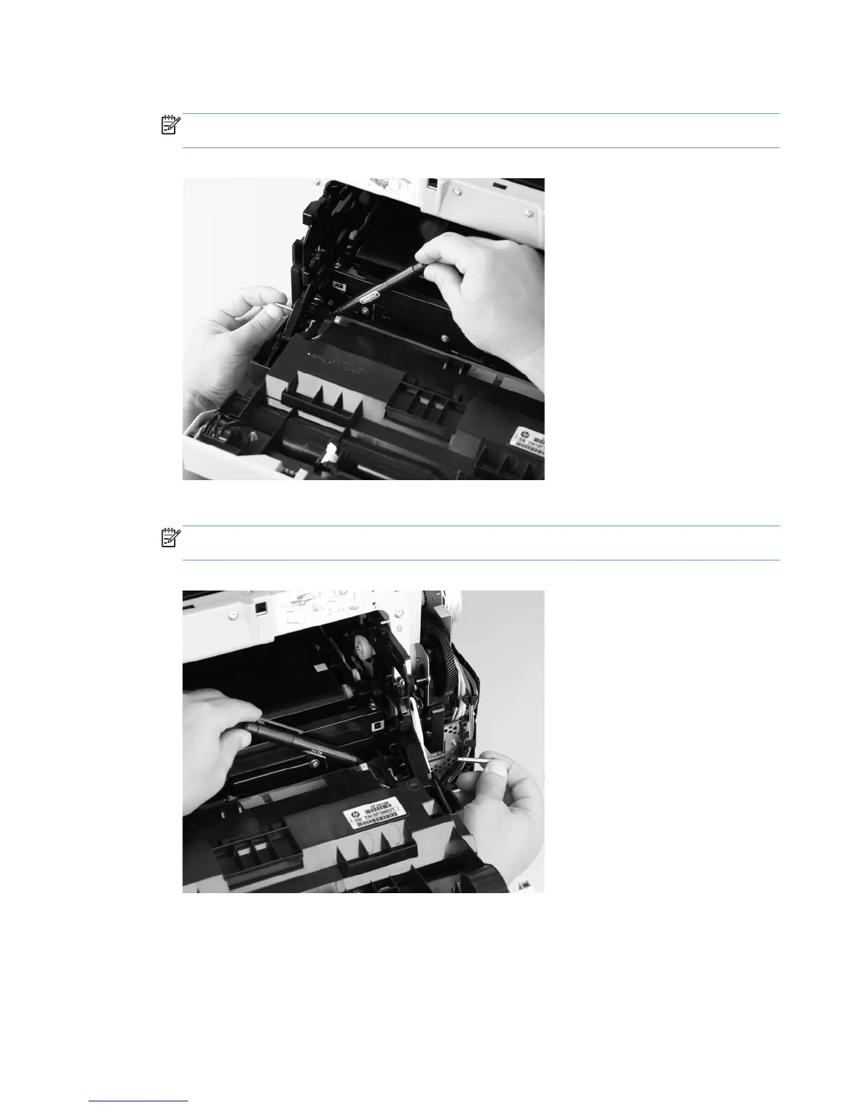NOTE: A precision point screwdriver is required to release the front door pins. The width of the blade