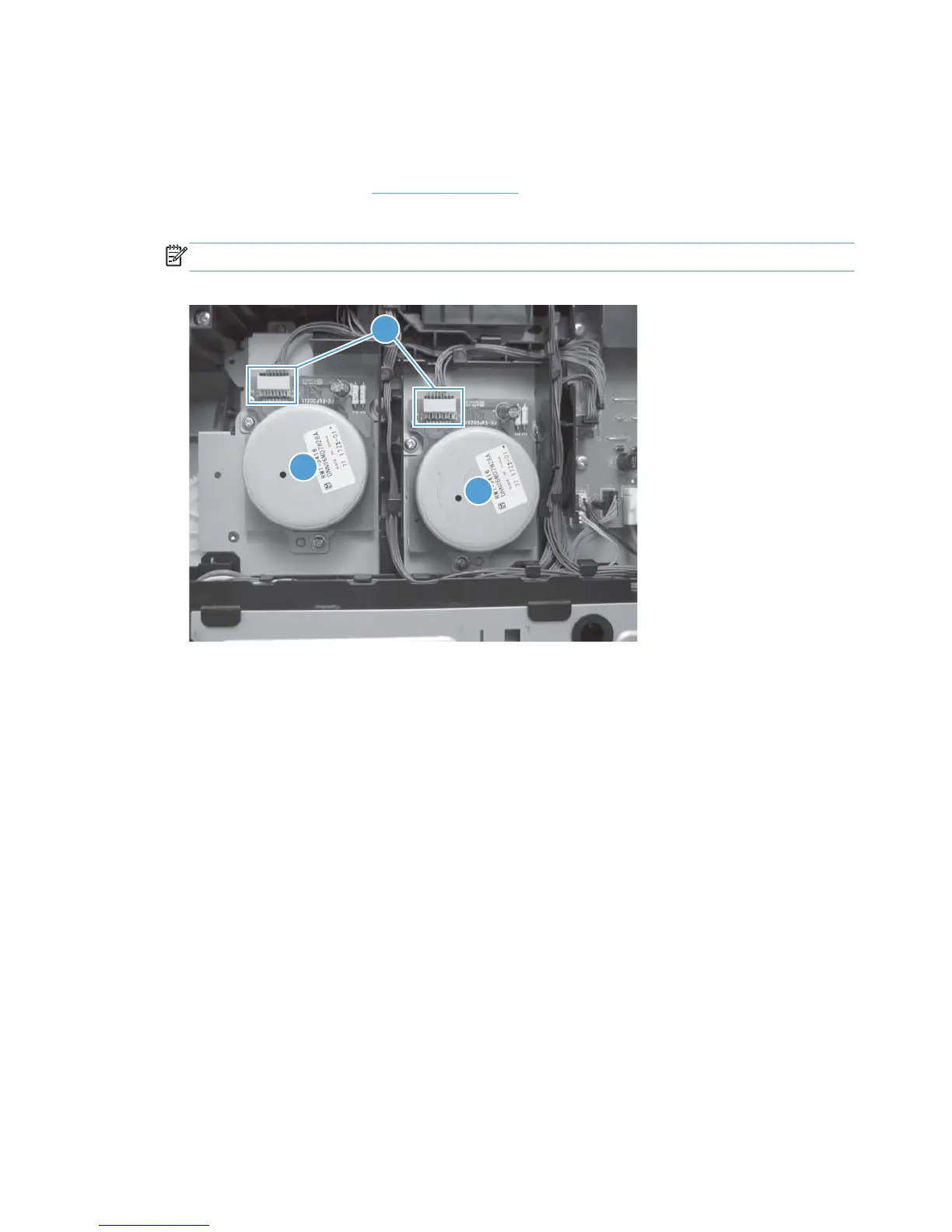 This procedure can be used to remove the drum motor (M1) or the developer motor (M2). HP does not